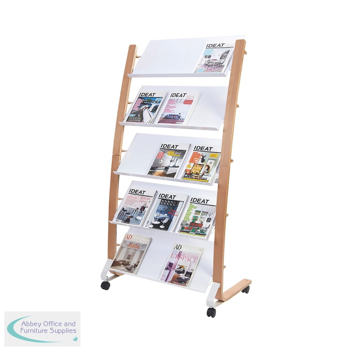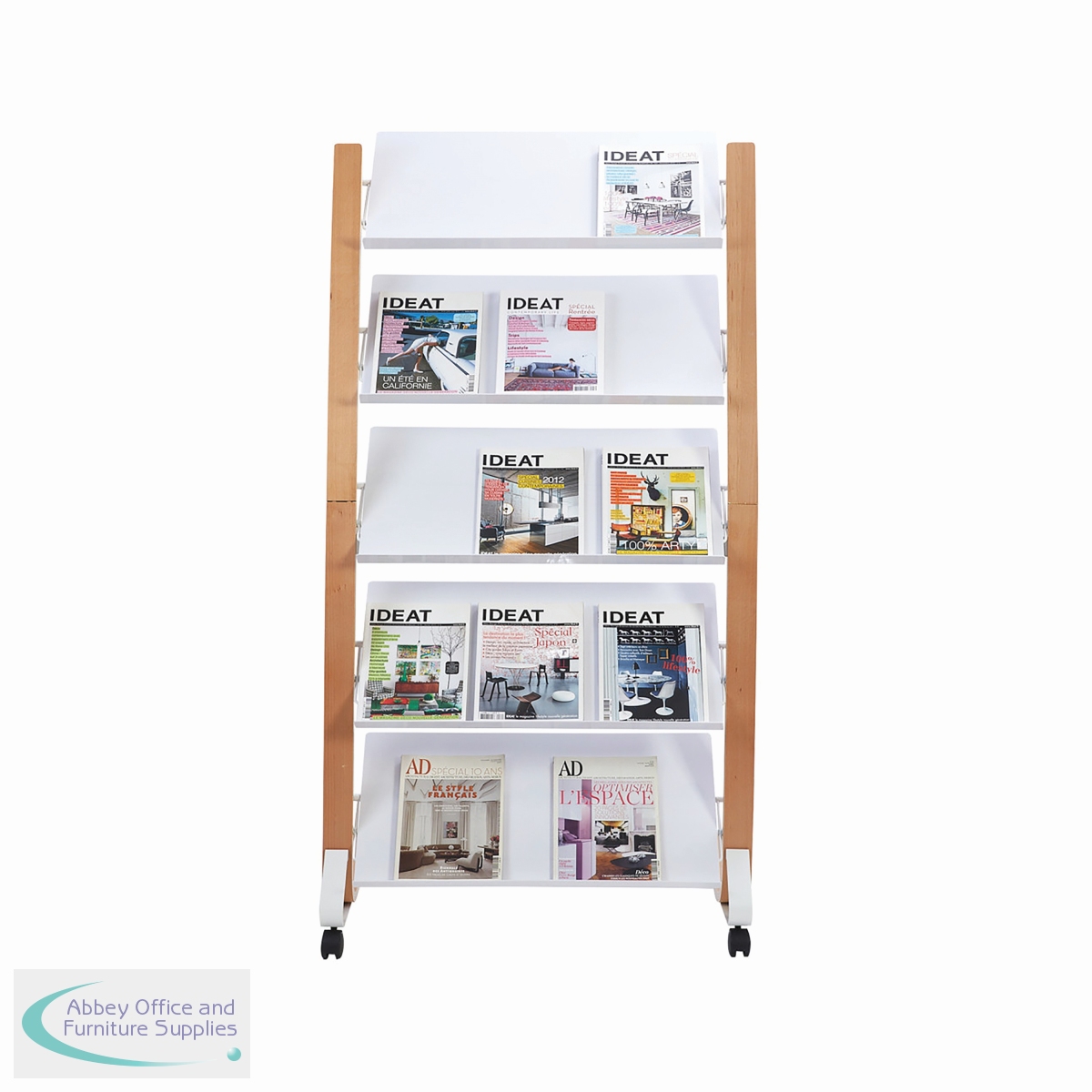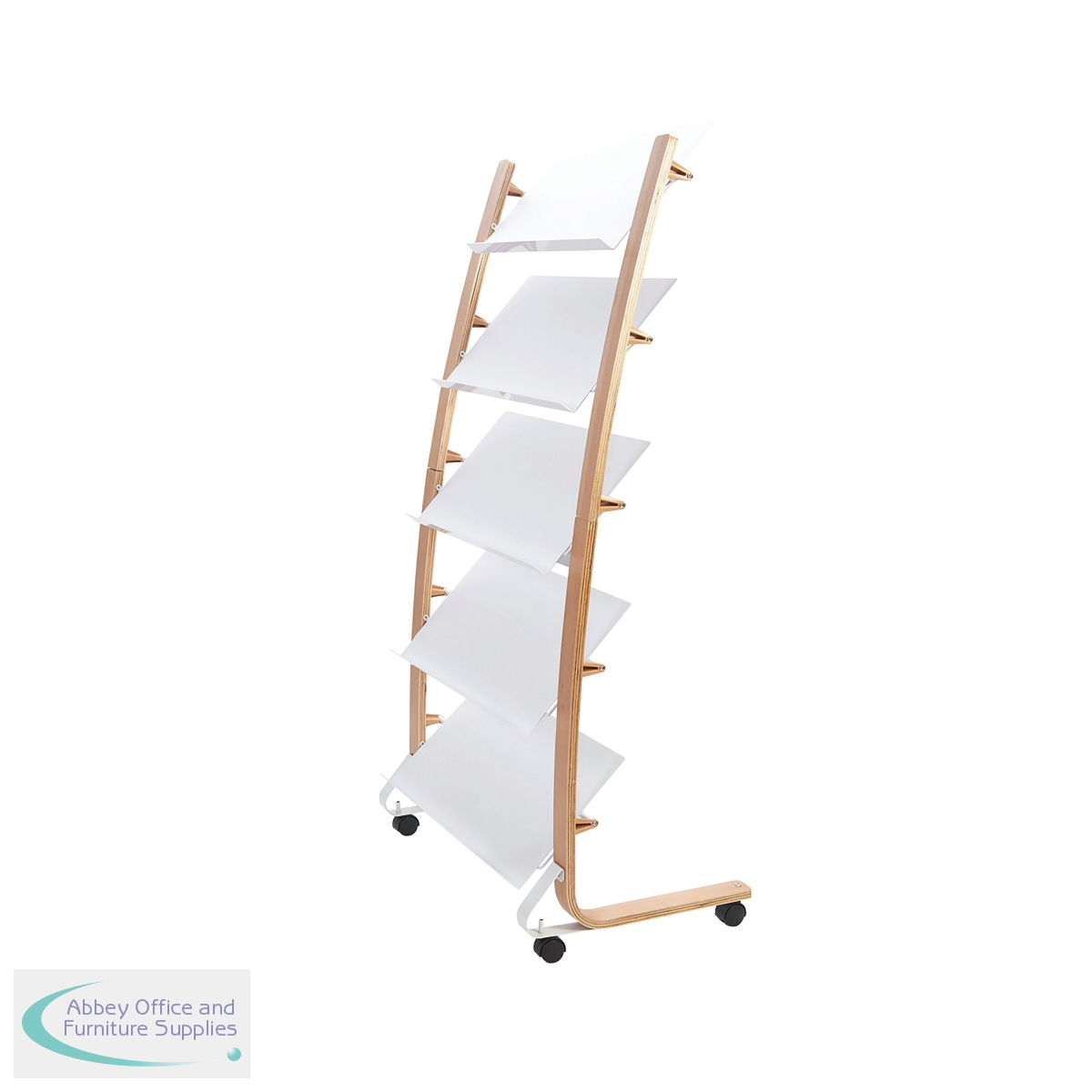The modern and stylish display stand on wheels is the ideal solution for stylishly displaying magazines or brochures in your reception area. With its 5 compartments, each 4cm deep, you will be able to display a wide range of document sizes and formats. With its robustness and durability, the wooden document display stand is designed to stand the test of time.