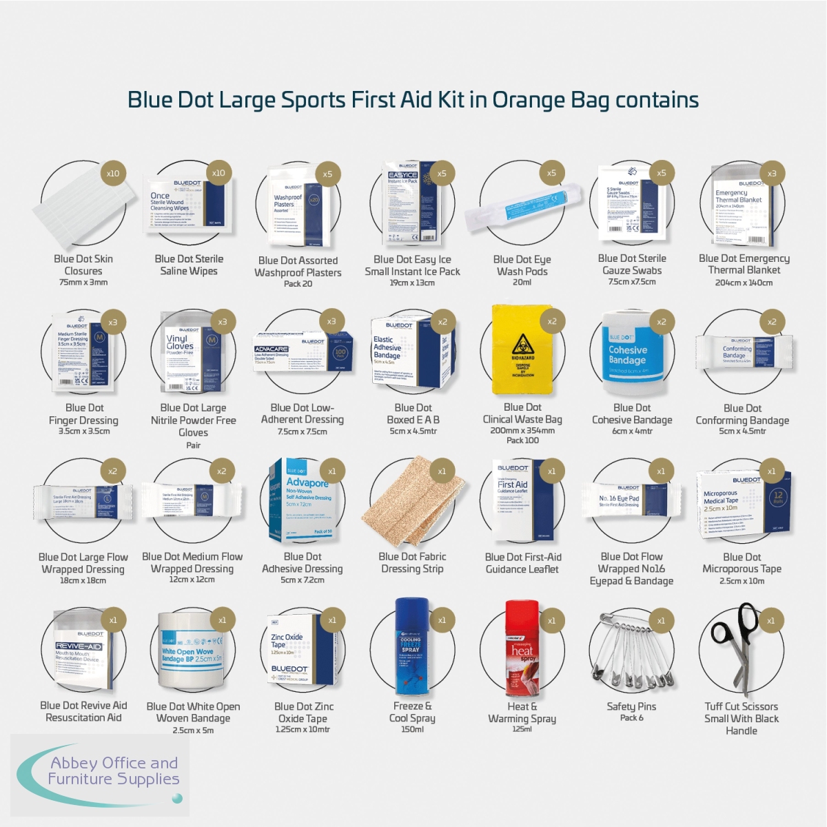 WAC01103 - Blue Dot Premium Advanced Sports First Aid Kit in Orange Bag Large 300003PPVOW