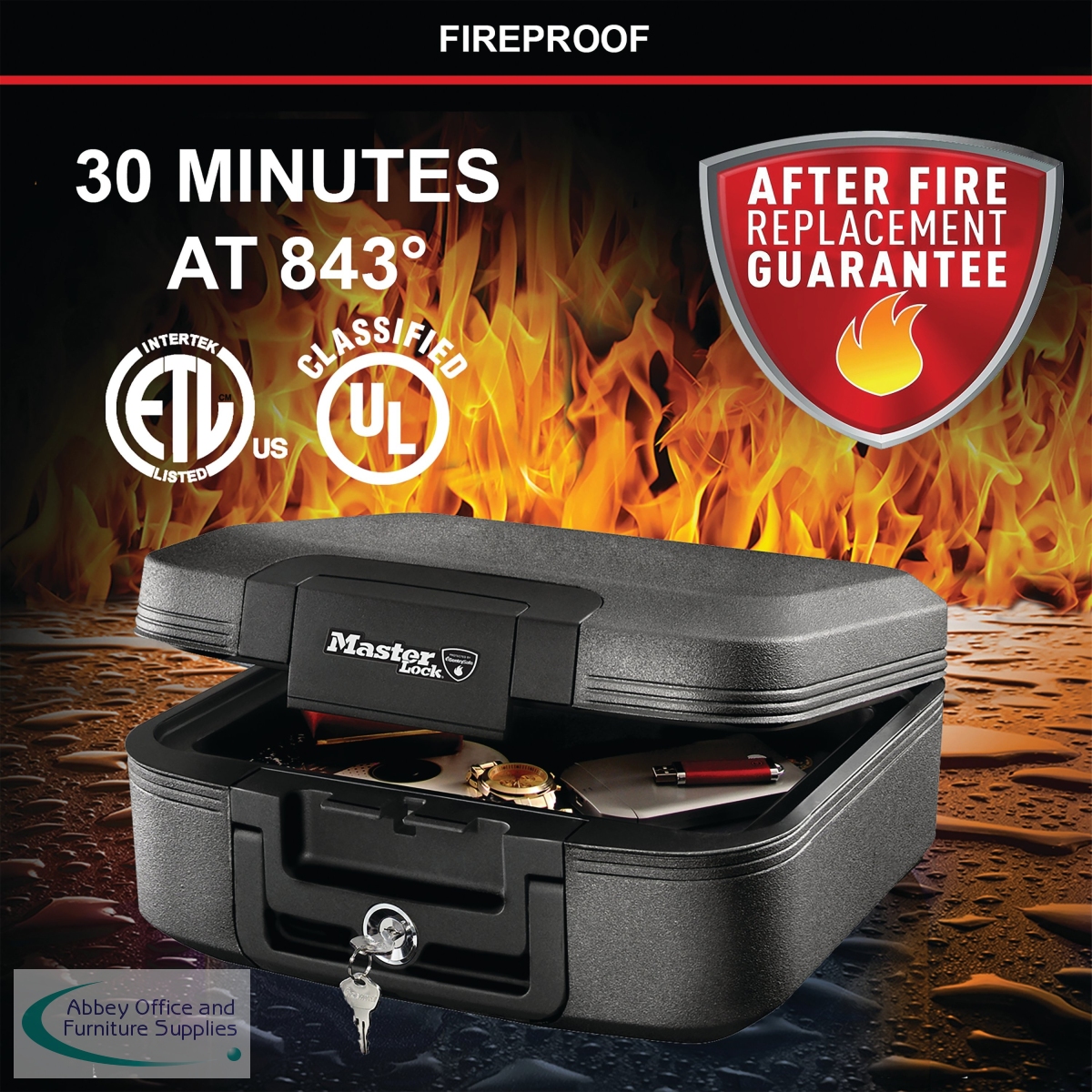 Master Lock Fireproof Security Safe Fire & Water resistant Medium - LCHW20101 - For A4 Documents, Electronics, Etc.