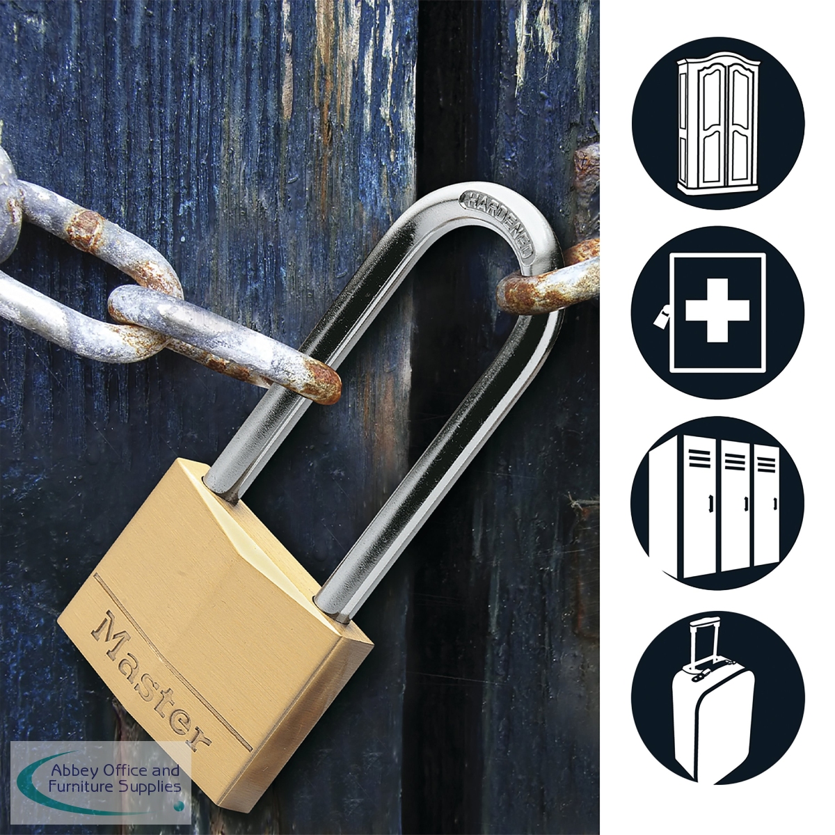 SG209297 - Master Lock 40mm Brass Padlock with 2 Keys Long Shackle 140EURDLH