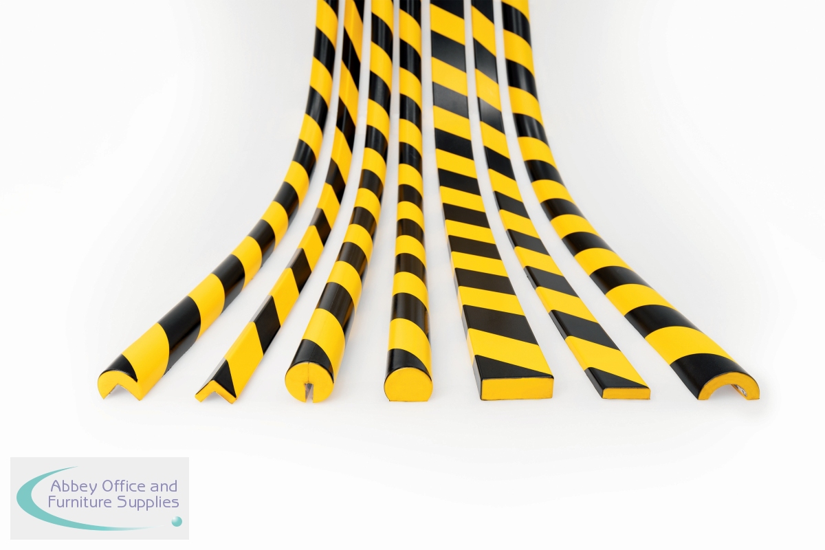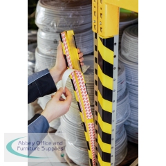 Corner Protection Profile is a self-adhesive, flexible corner protection profile made of Polyurethane foam. Suitable for indoor use only. Ideal for use in production areas, shipping department and warehousing, basements, staircases, garages, on walls and joists, shelves and cabinets as well as on machines, storage trolleys etc. Marks danger spots, protects surfaces, walls and mitigates impact injuries. Profiles can be shortened to the desired length with a sharp cutter knife. Colour according to ASR A1.3 similar to RAL 1003/9004 (signal yellow/signal black).