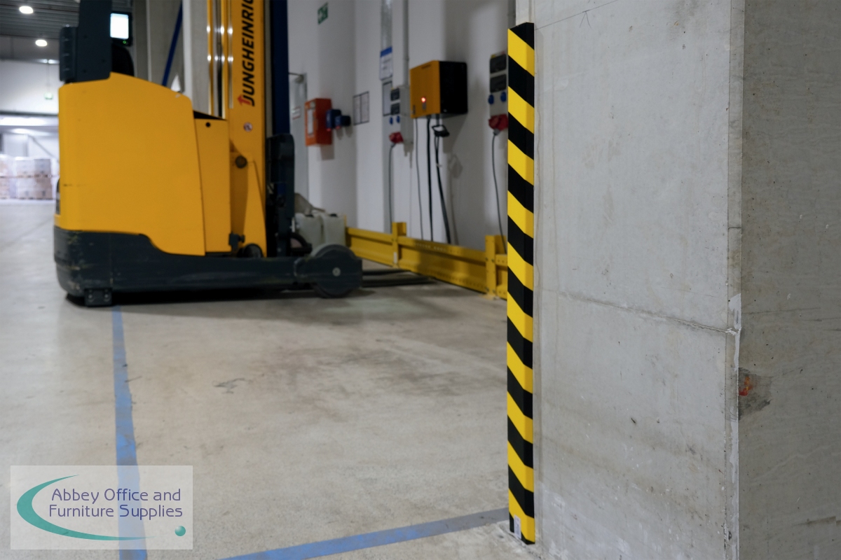 Surface Protection Profile is a self-adhesive, flexible surface protection profile made of Polyurethane foam. Suitable for indoor use only. Ideal for use in production areas, shipping department and warehousing, basements, staircases, garages, on walls and joists, shelves and cabinets as well as on machines, storage trolleys etc. Marks danger spots, protects surfaces, walls and mitigates impact injuries. Profiles can be shortened to the desired length with a sharp cutter knife. Colour according to ASR A1.3 similar to RAL 1003/9004 (signal yellow/signal black).
