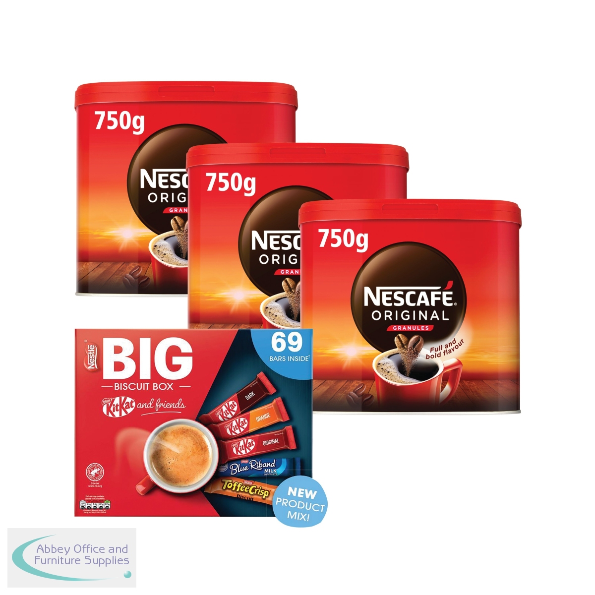NL819888 - Nescafe Original 750g x3 + FOC Big Biscuit Box