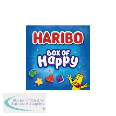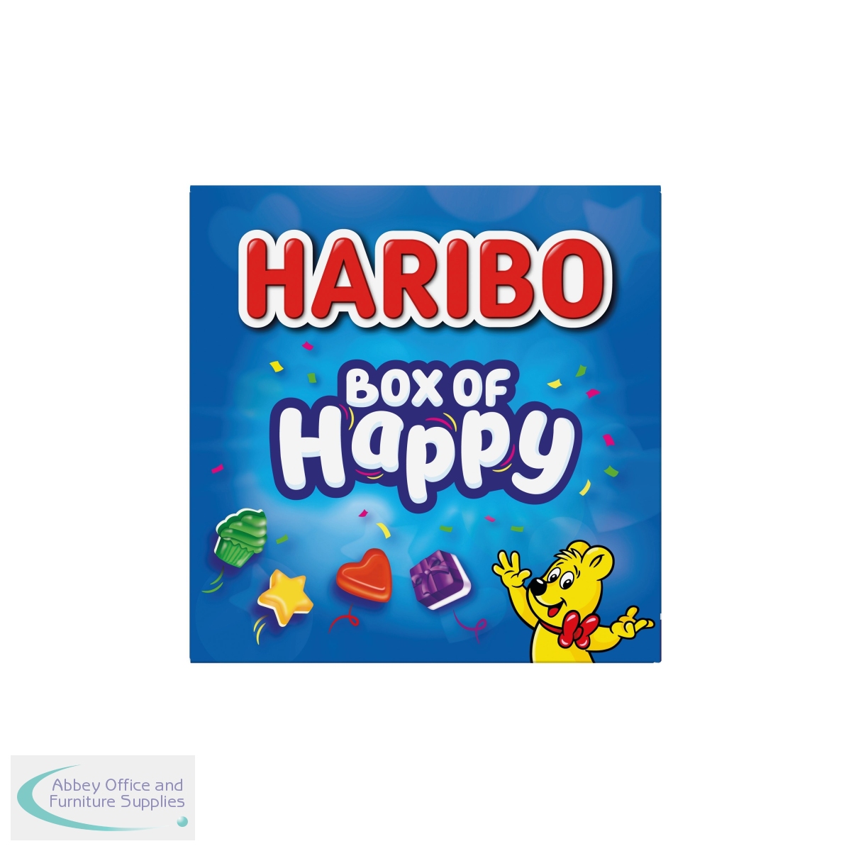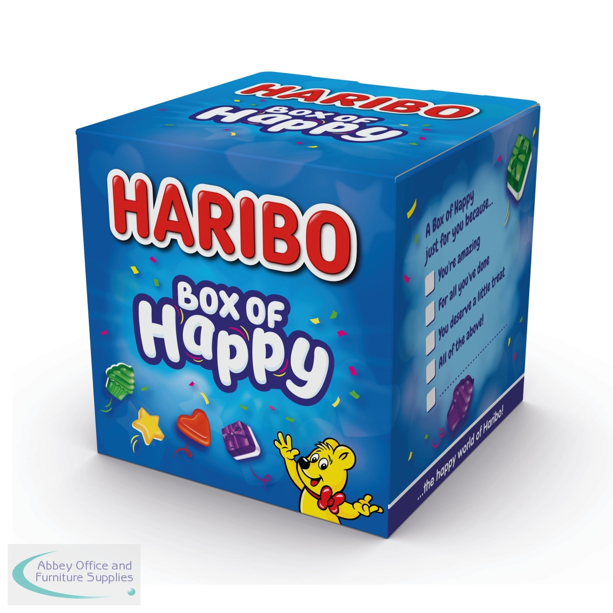 Ideal for celebrating everyday moments of happiness whether that's to say a little thank you, to share some love, or simply to brighten someone's day. HARIBO Box of Happy contains a selection of Cupcakes, Stars, Hearts and Present shaped treats in a variety of fruit flavours including strawberry, pineapple, blackcurrant, and apple.
