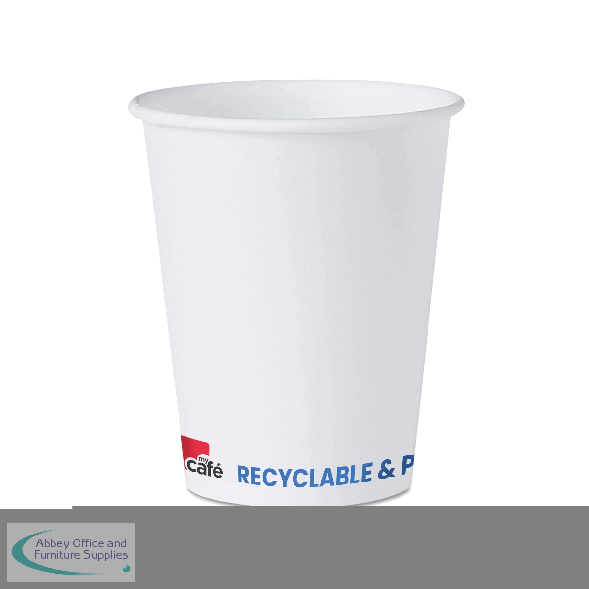 These 7oz single wall cups are the perfect accompaniment to a cold drink. These MyCafe branded cups are made with a natural card material and are completely plastic free, 100% recyclable and compostable. Easily disposed of, lowering the amount of washing up, these cups are convenient and cost effective.
