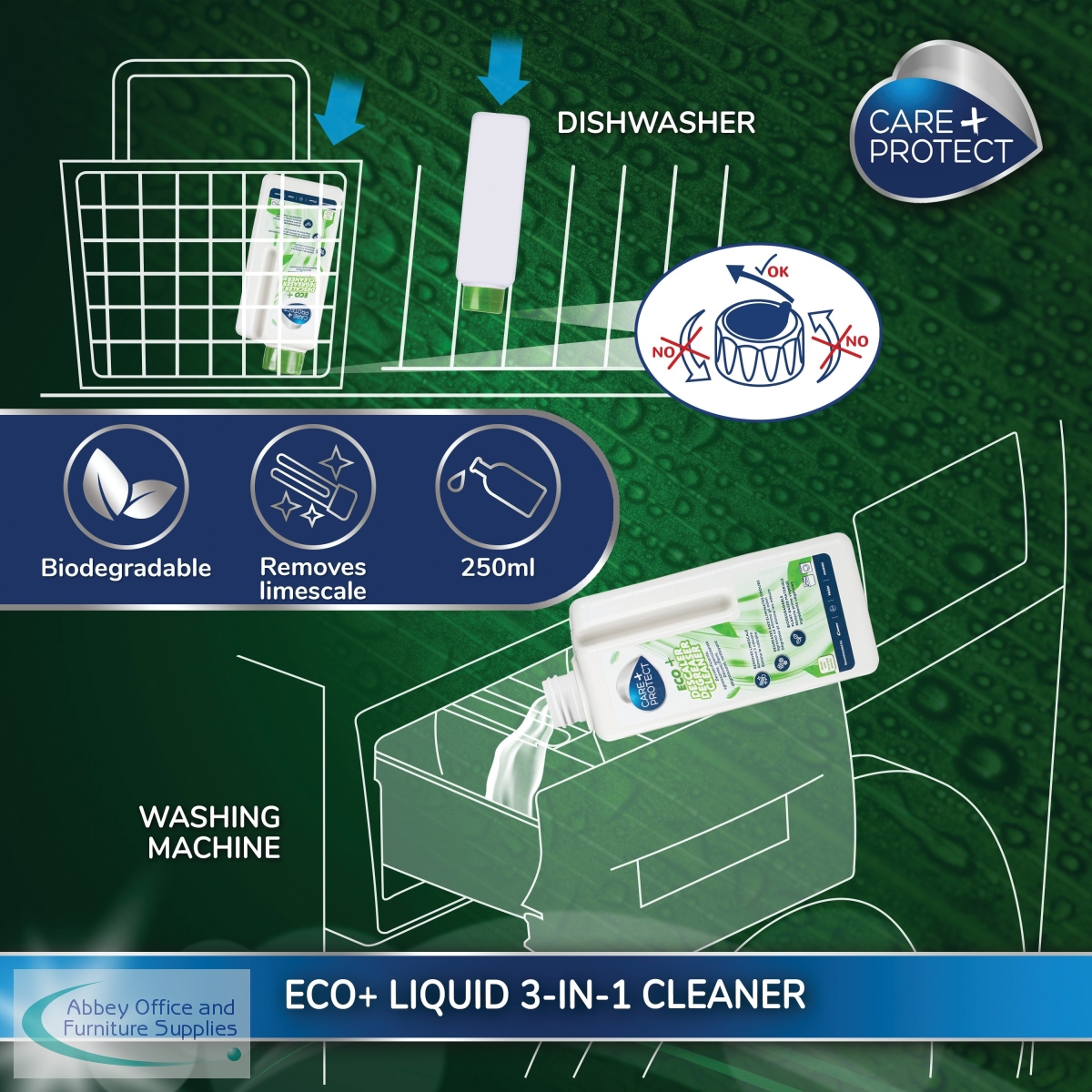 Eco+ 3-In-1 is a powerful universal descaler, degreaser and cleaner. Suitable for all washing machines and dishwashers. Effective removal of appliance limescale. Strongly degreases and cleans. Maintain the performance of your appliance.