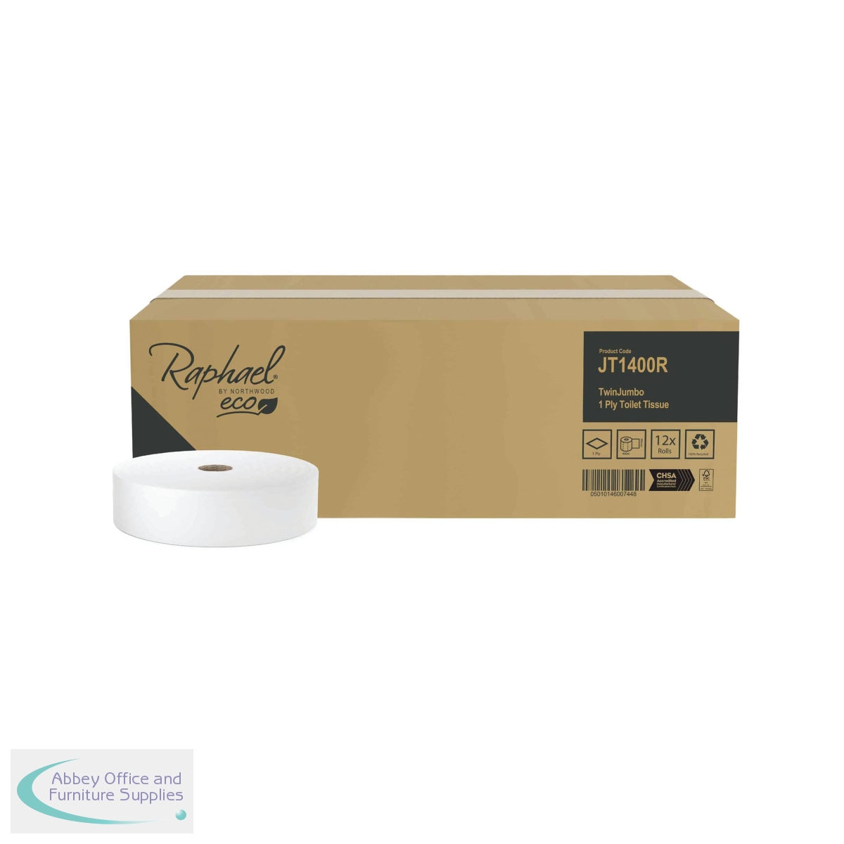 NH00407 - Raphael 1-Ply Twin Jumbo Toilet Roll 400m (Pack of 12) JT1400RDS