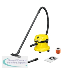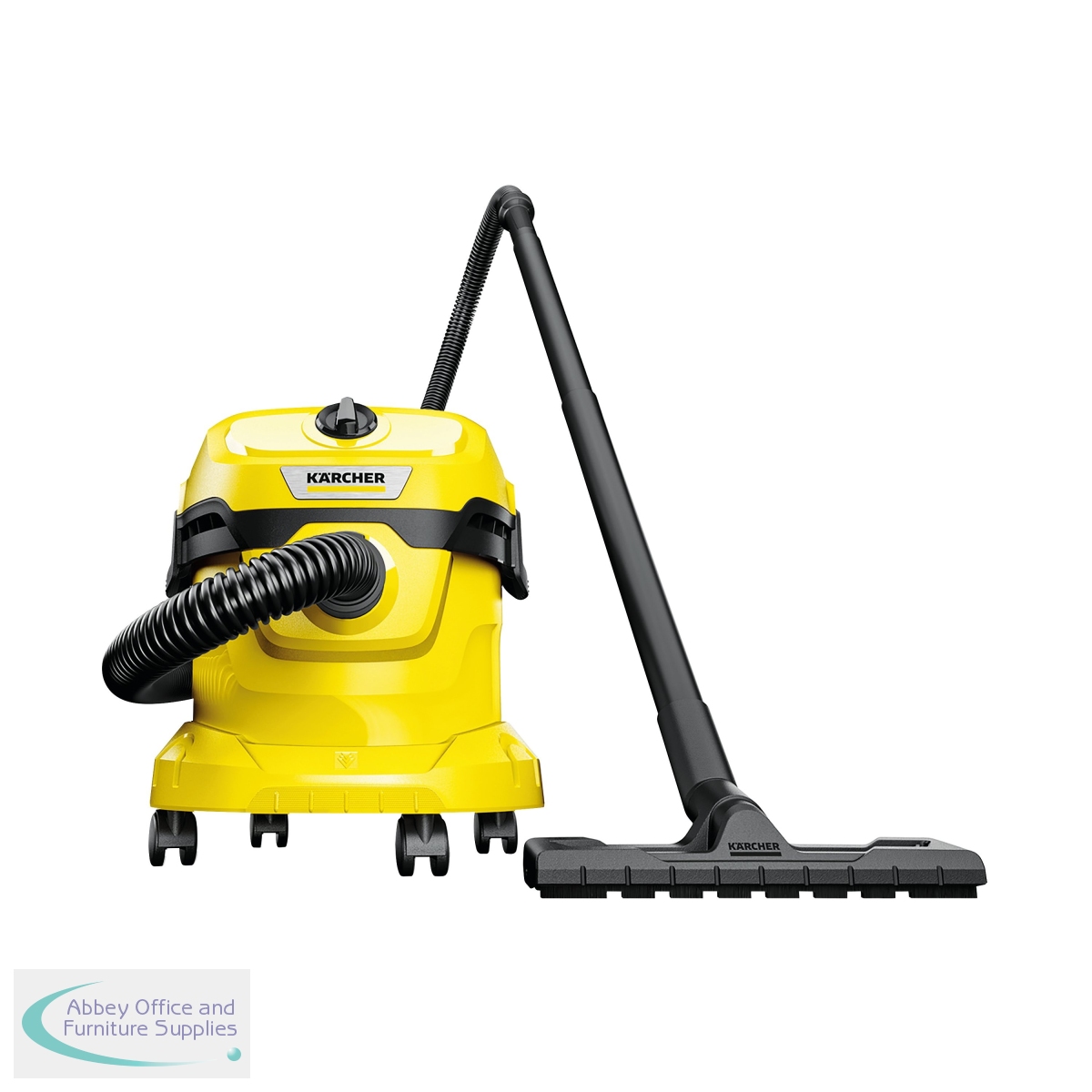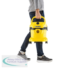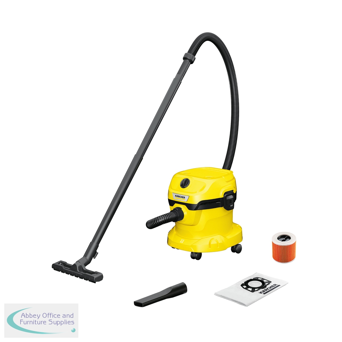 The powerful Karcher WD 2 Plus wet and dry vacuum cleaner for the jobs too tough for your everyday indoor vacuum. This robust machine stands up to the most stubborn dirt around your car, garage and garden, effortlessly switching between wet and dry pick-up for everything from dust to heavy rubble.This WD 2 has a 1000W motor, delivering extreme suction power that will achieve a perfect finish even on the toughest outdoor cleaning tasks. Whether you are tackling dust, glass or even liquids, the intelligent cartridge filter system means you can move seamlessly from one type of debris to another, saving time and efficient cleaning for any job. Includes a durable 12 litre plastic container, 1.8m suction hose, two suction tubes, a cartridge filter and a wet to dry floor tool. With onboard storage to keep all the kit together in one place.