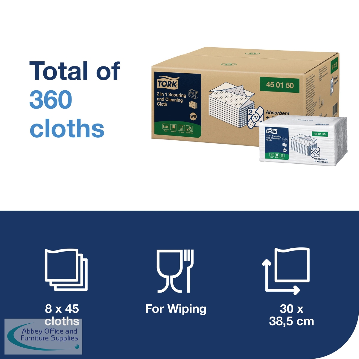 SCA14829 - Tork 2 in 1 Scouring and Cleaning Cloth White 450150 (Pack of 360)