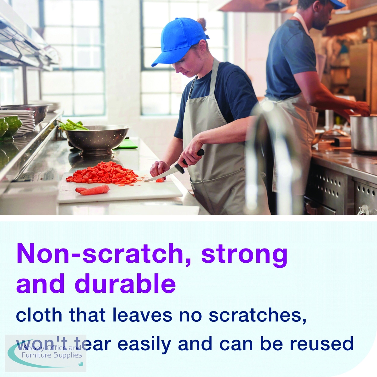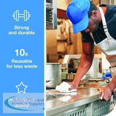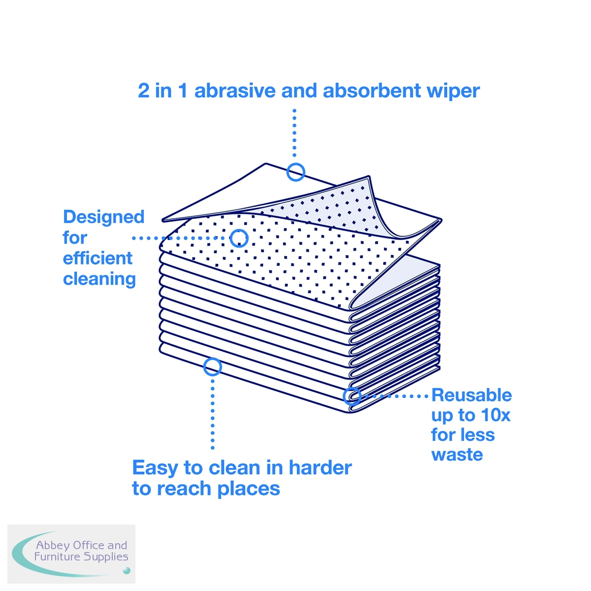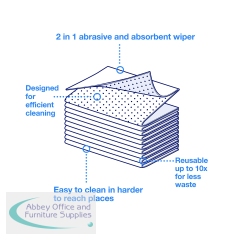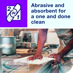 Improve cleaning efficiency with this 2 in 1 scouring and cleaning cloth. It's both abrasive and absorbent to handle stubborn messes, with a design that's gentle on surfaces to prevent scratches. Plus, it's flexible, making it easy to clean hard-to-reach spots. These scouring and cleaning cloths can be reused up to 10 times to reduce waste.