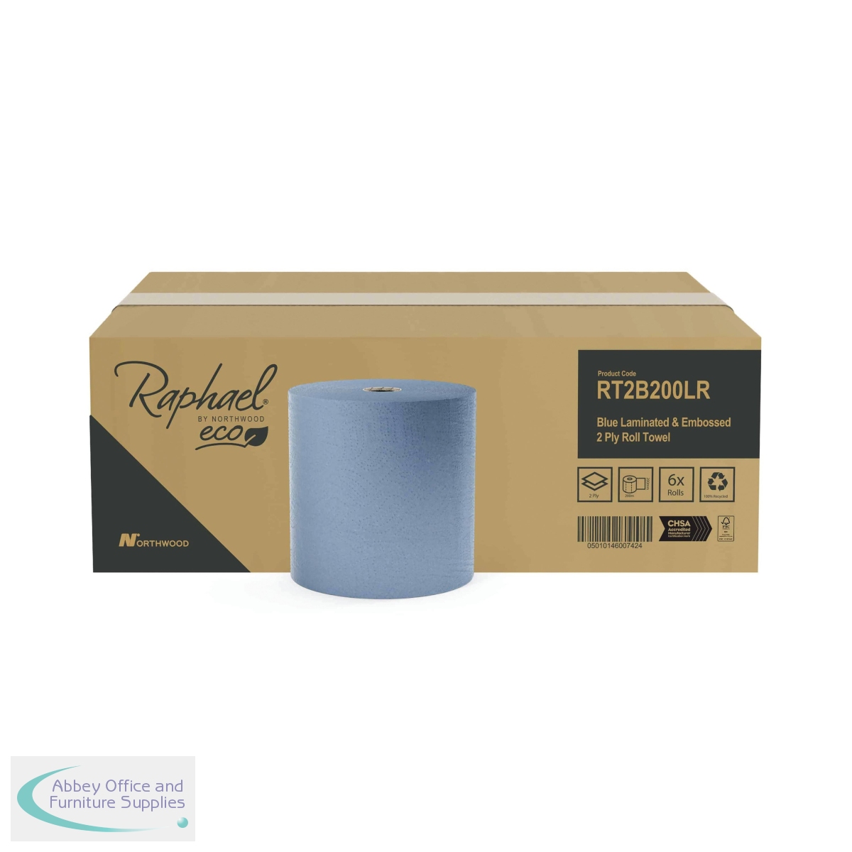NH00417 - Raphael Roll Towel 2-Ply 200m x 200mm Blue (Pack of 6) RT2B200LRDS
