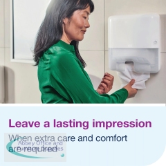 Save time restocking dispensers with 50% compressed paper hand towels that double dispenser capacity. Guests enjoy a premium experience with these soft and absorbent hand towels. One-at-a-time dispensing helps improve hygiene and reduce waste as guests only touch the towel they take. Our compact dispensers fit into small spaces for maximum convenience.