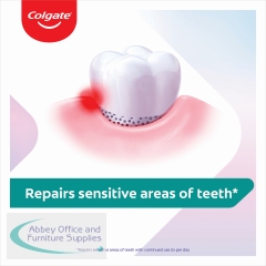 Colgate Sensitive Instant Relief Repair Toothpaste brings relief from sensitivity and helps to protect teeth and gums. This repair and protect toothpaste repairs exposed tubules in dentine that lead to sensitivity pain while helping to protect from cavities, looking after gum health and freshening the breath. Containing Pro-Arginine technology that plugs the tubules and starts to block sensitivity pain instantly.