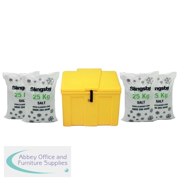 SBY40184 - Heavy Duty Lockable Salt and Grit Bin Yellow 110L with White De-icing Salt 395100