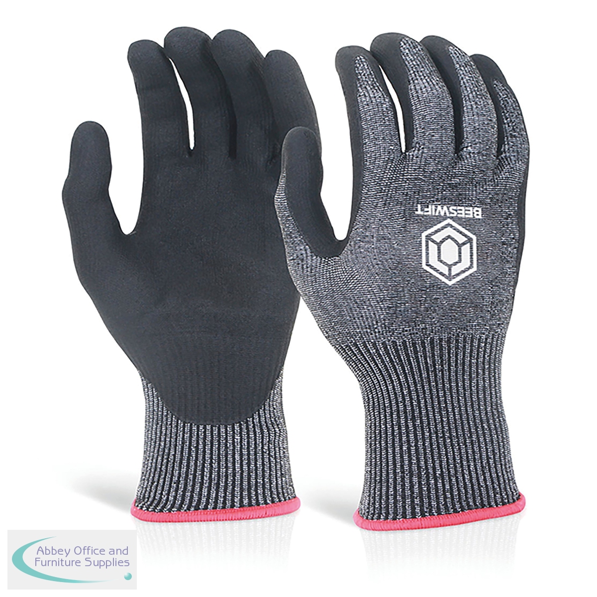 BSW17159 - Beeswift Microfoam Nitrile Cut 5 Gloves Black L KS5L