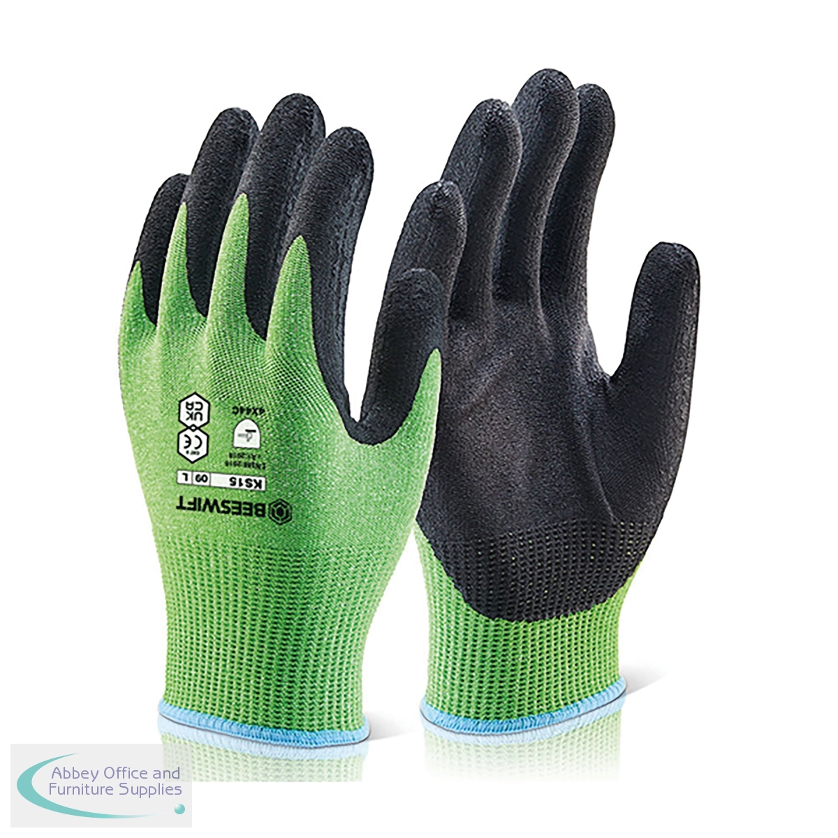 BSW23317 - Beeswift Kutstop Microfoam Nitrile Gloves Cut Level 5 Green L KS15L