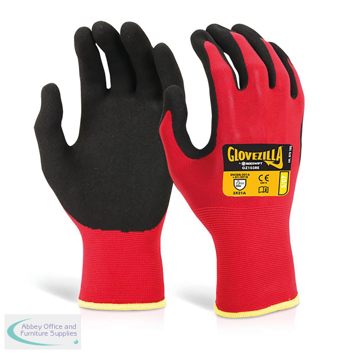BSW36182 - Beeswift Glovezilla Nitrile Nylon Gloves (Pack of 10) Red L GZ103REL