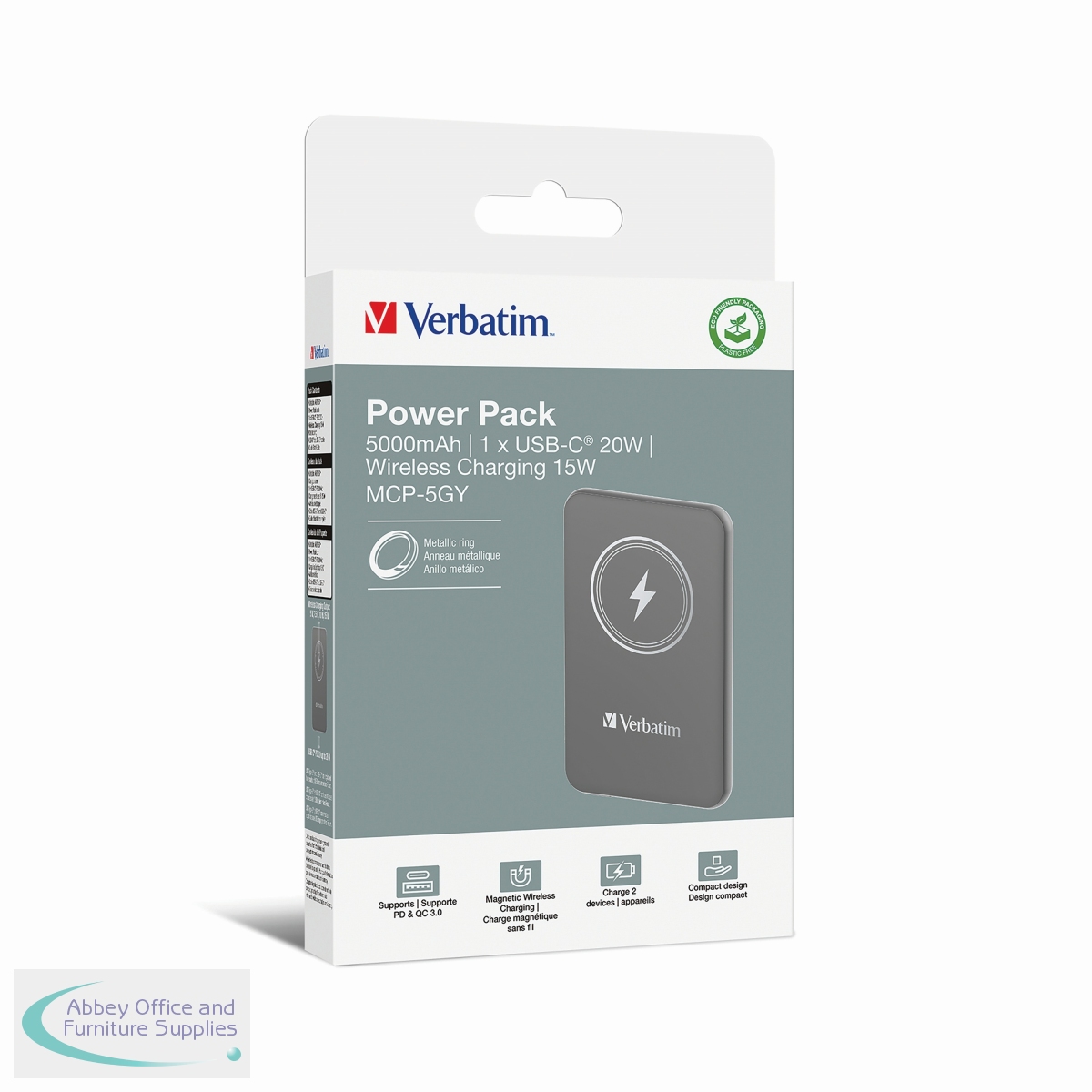 VM32244 - Verbatim Charge n Go Power Bank Magnetic Wireless Charging 5000mAh Grey 32244