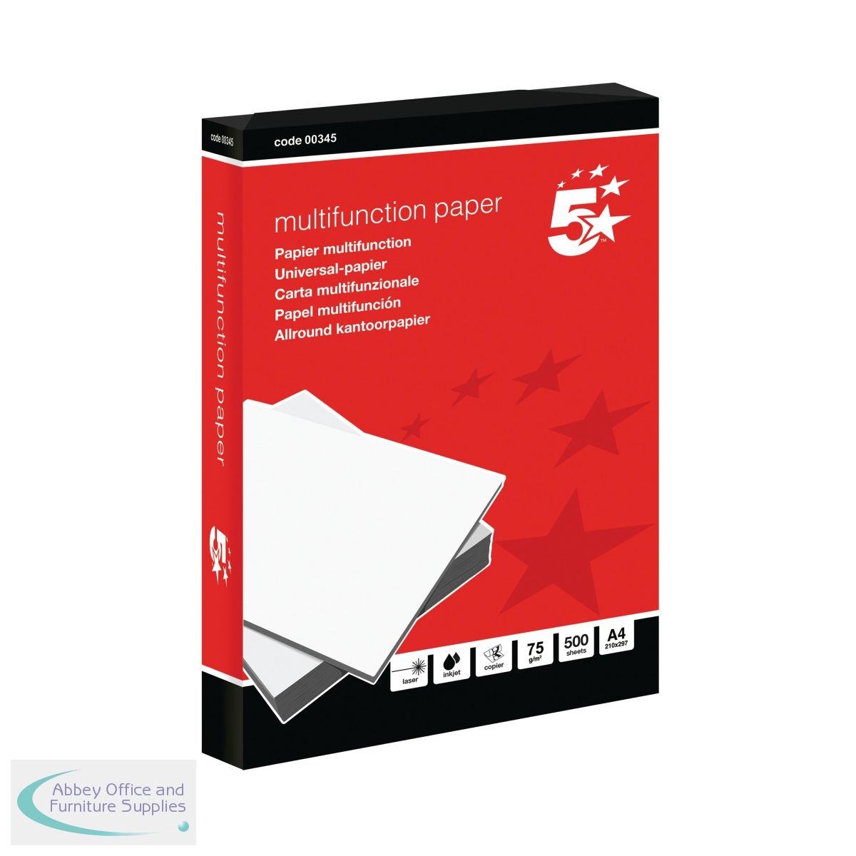 [ 5 Star; Paper; Copier/Inkjet/Laser - Paper A4; Less than 80gsm White/Colour; OEM Code FS00345; EAN 05018206003454; VOW Code FS00345 ]