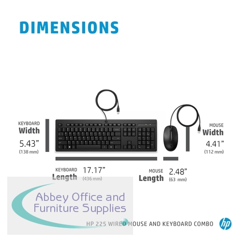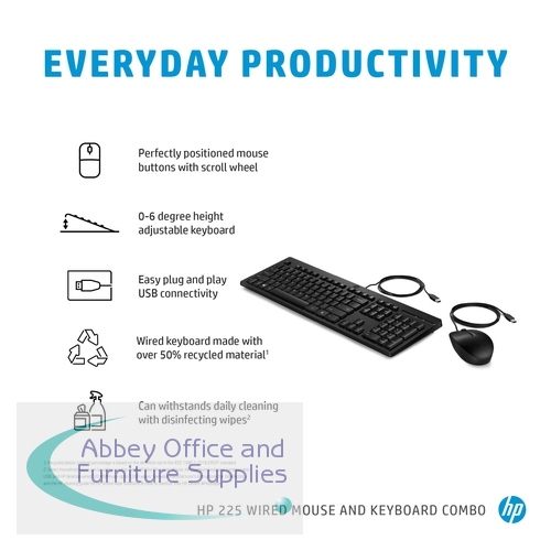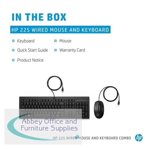 HP286J4AAABU - HP 225 Wired Mouse and Keyboard Combo 286J4AA#ABU