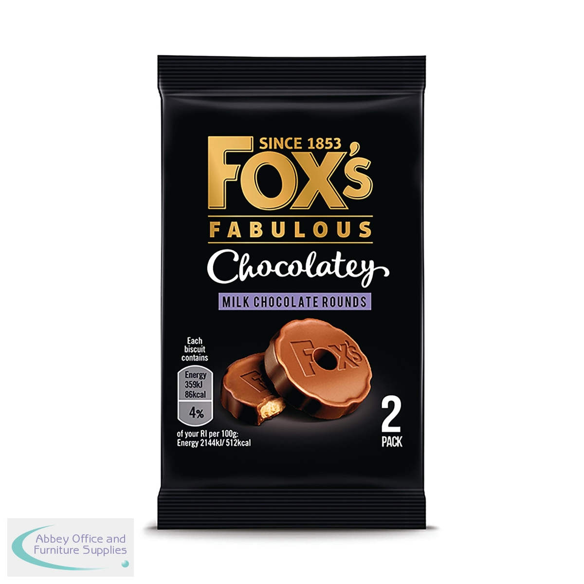Fox's Chocolatey Rounds are delicious shortcake biscuit coated in milk chocolate. Ideal for hotels, conference and hospitality venues. Suitable for vegetarians. Each pack contains 2 biscuits. 48 packs supplied.