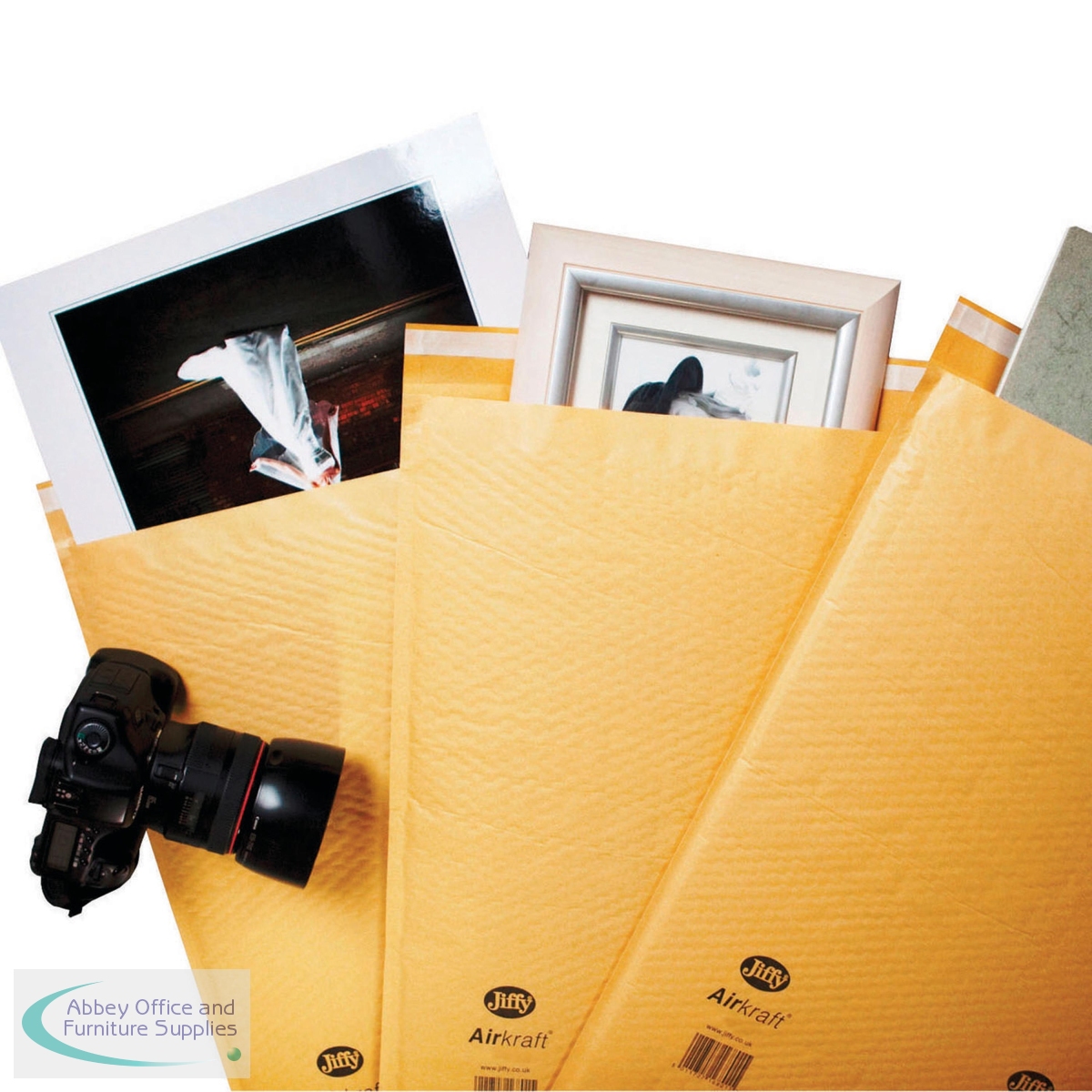 These Jiffy Airkraft padded mailers are lightweight and economical to help keep postage costs down. The mailers feature a fully laminated lining of Astro SupraBubble for extra strength and puncture resistance, and a strong self-seal closure. Ideal for mailing delicate or fragile items, the mailers are also impact resistant for protection during transit. These size 0 mailers measure 140 x 195mm. This pack contains 100 gold mailers. The bubble that inner lines the mailers is produced using a minimum of 30% recycled content.