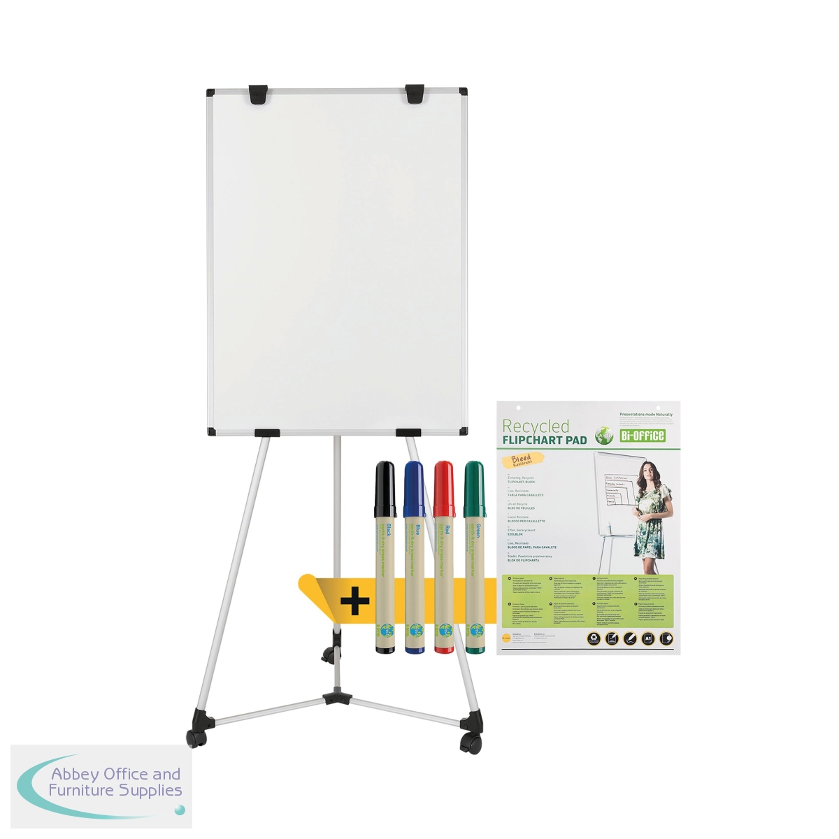 BQ50035 - Bi-Office Mobile Magnetic Easel with Flipchart Pad and Pens Earth Kyoto Easel Bundle