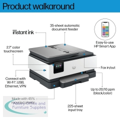 The professional colour inkjet printer for your home office from the HP, paired with the easiest-to-use print app. Print, scan, copy, or fax right from your smartphone with the best and easiest-to-use print app. From notes to presentations, enjoy easy printing designed to make you succeed at work. This printer is intended to work only with cartridges that have a new or reused HP chip, and it uses dynamic security measures to block cartridges using a non-HP chip. Periodic firmware updates will maintain the effectiveness of these measures and block cartridges that previously worked. A reused HP chip enables the use of reused, remanufactured, and refilled cartridges.