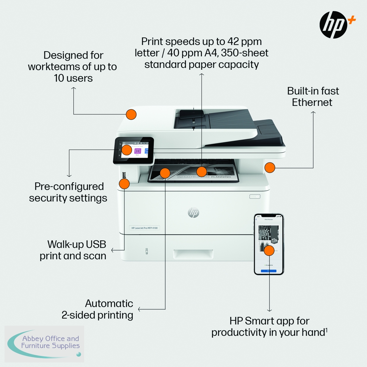 HP2Z623FABU - HP LaserJet Pro 4102fdn A4 4-in-1 Mono Laser Printer 2Z623F#ABU