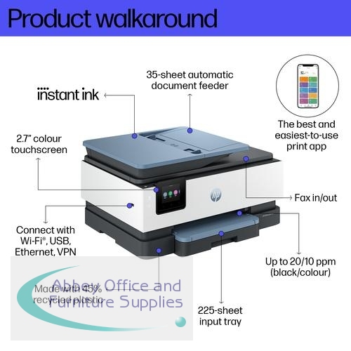 The professional colour inkjet printer for your home office from the HP, paired with the easiest-to-use print app. Print, scan, copy, or fax right from your smartphone with the best and easiest-to-use print app. From notes to presentations, enjoy easy printing designed to make you succeed at work. can multiple documents at once and edit them from your smartphone. This printer is intended to work only with cartridges that have a new or reused HP chip, and it uses dynamic security measures to block cartridges using a non-HP chip. Periodic firmware updates will maintain the effectiveness of these measures and block cartridges that previously worked. A reused HP chip enables the use of reused, remanufactured, and refilled cartridges.