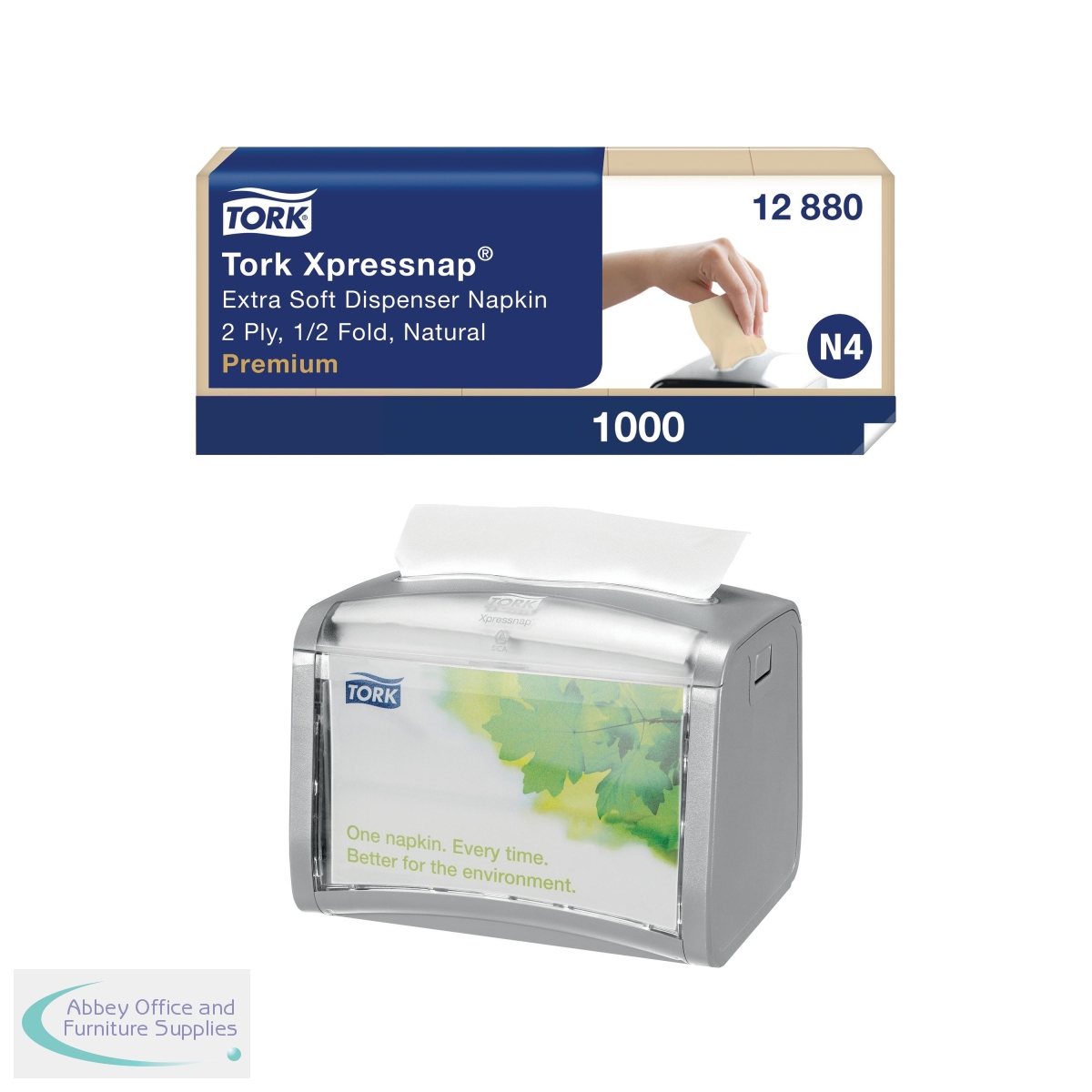 SCA801019 - Tork Xpressnap 2-Ply Napkins Natural (Pack of 1000) + FOC Dispenser