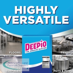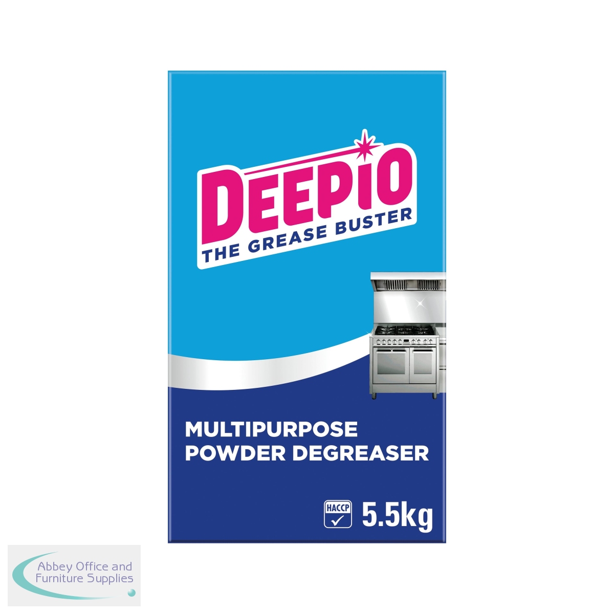 This Deepio powder is a powerful and highly effective powder degreaser for cleaning all greasy surfaces. It cuts through tough grease with ease on floors, work surfaces, walls, kitchen equipment, cookers, hoods, fryers, pots, pans, utensils and table ware. Non-tainting formula. Perfume and dye free, this powder is suitable for use in food preparation areas and catering industries.
