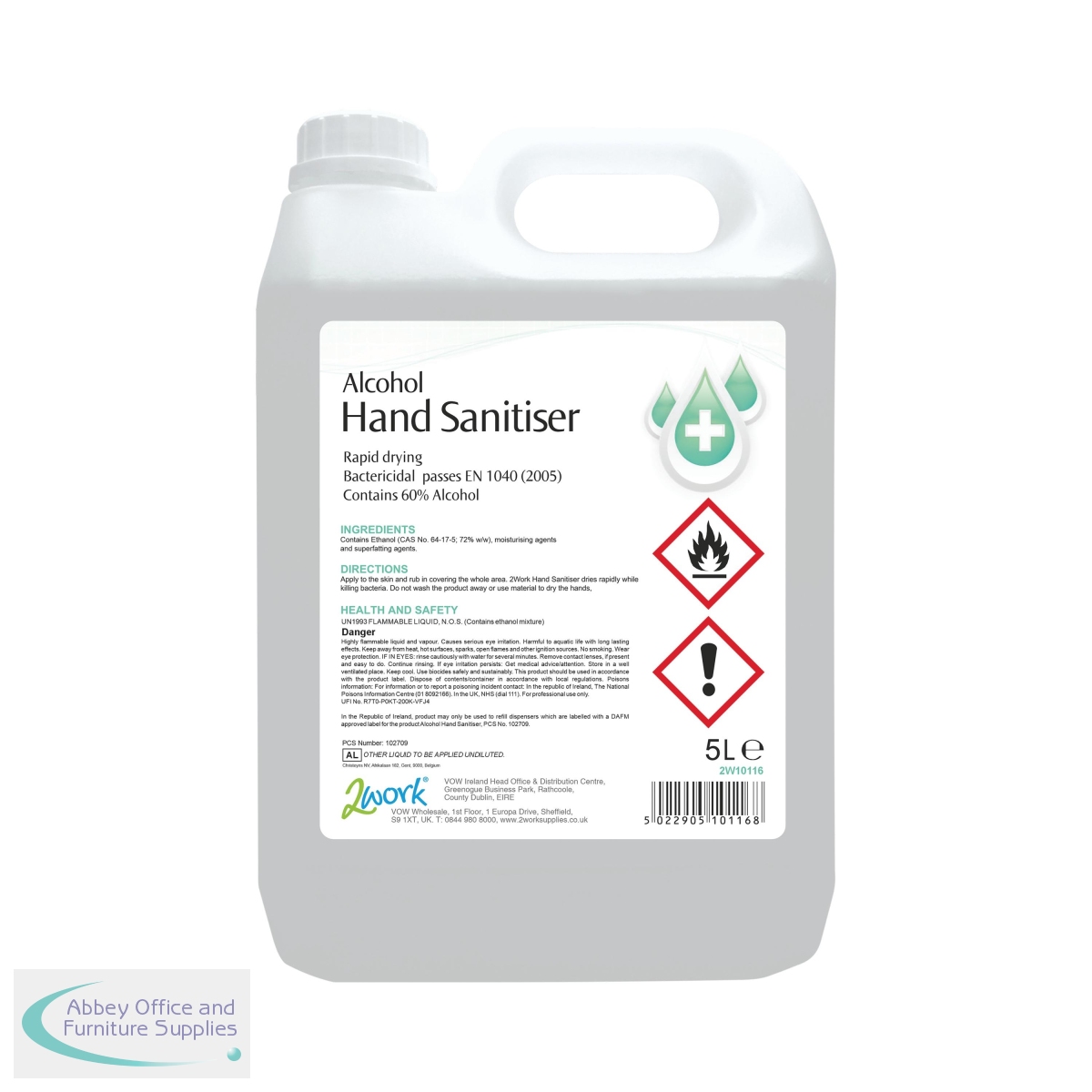 2W10116 - 2Work Alcohol Hand Sanitiser 5 Litre (Pack of 2) 2W10116