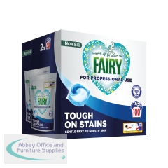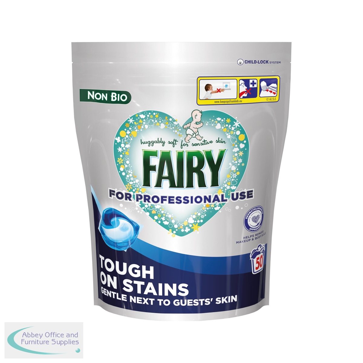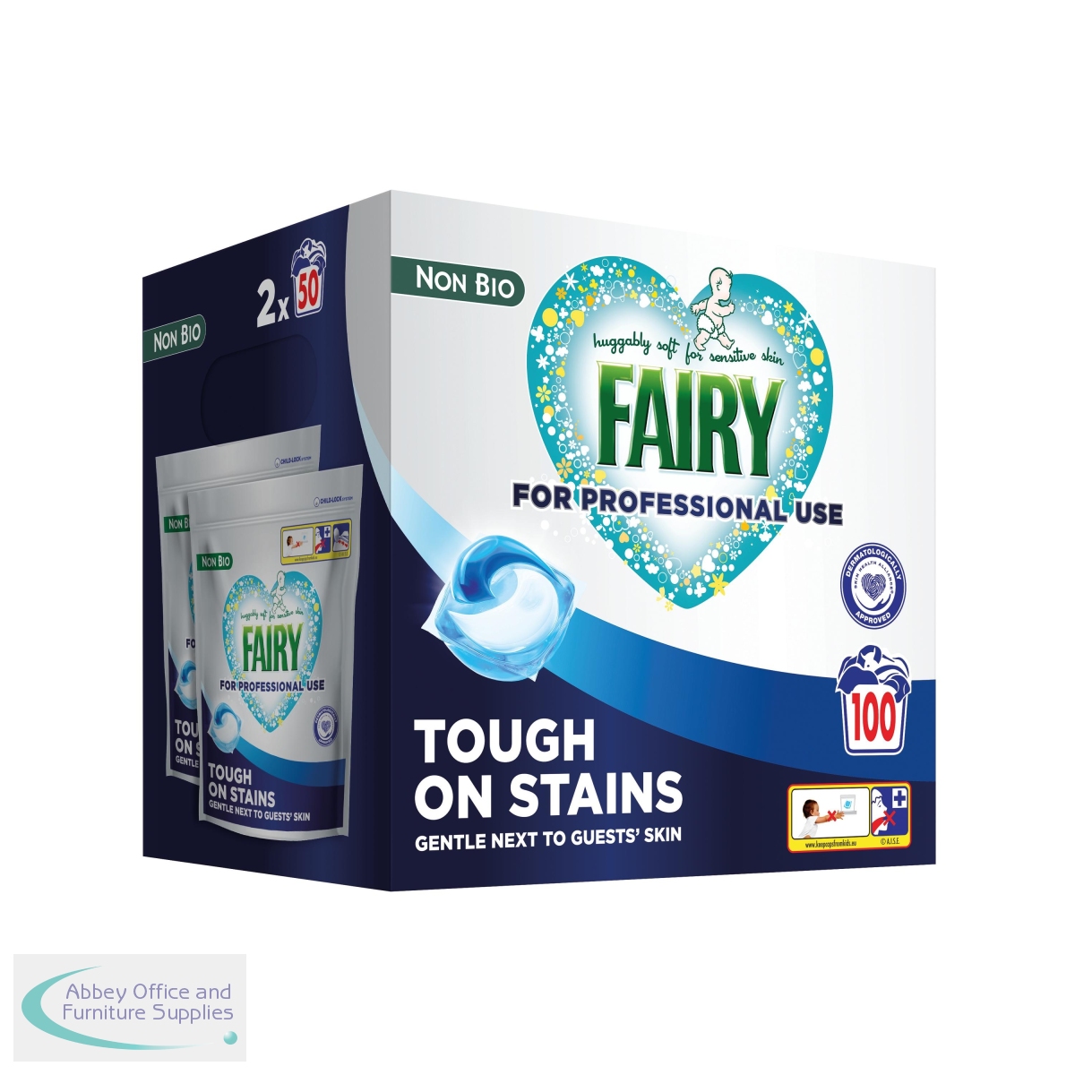 Fairy professional liquipods non-biological wash pods for outstanding stain removal and care for laundry. For professional use. Dermatologically tested and approved. Supplied in 2 sealed bags, each containing 50 pods.
