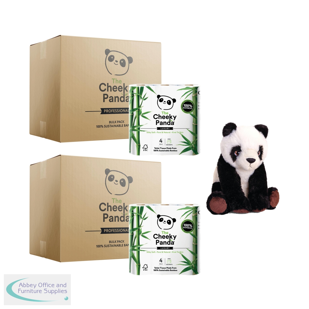 Made from sustainable bamboo, these soft and strong toilet rolls are kind to the skin. The Bamboo is sustainably sourced and the packaging is 100% plastic free. Each pack contains 4 rolls, each roll contains 200 sheets of 3-ply toilet tissue. This promotion includes 2 packs of 6 (48 rolls) plus a FREE Panda soft toy.