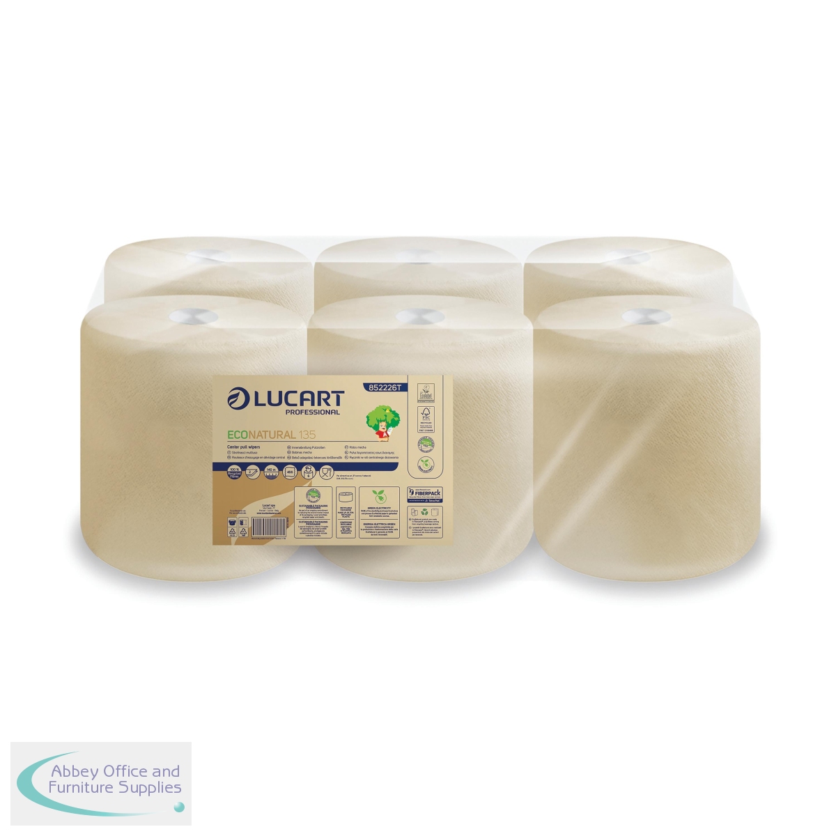 ESP45644 - Lucart Professional EcoNatural 135 2-Ply Centrefeed Roll Natural (Pack of 6) 852226T