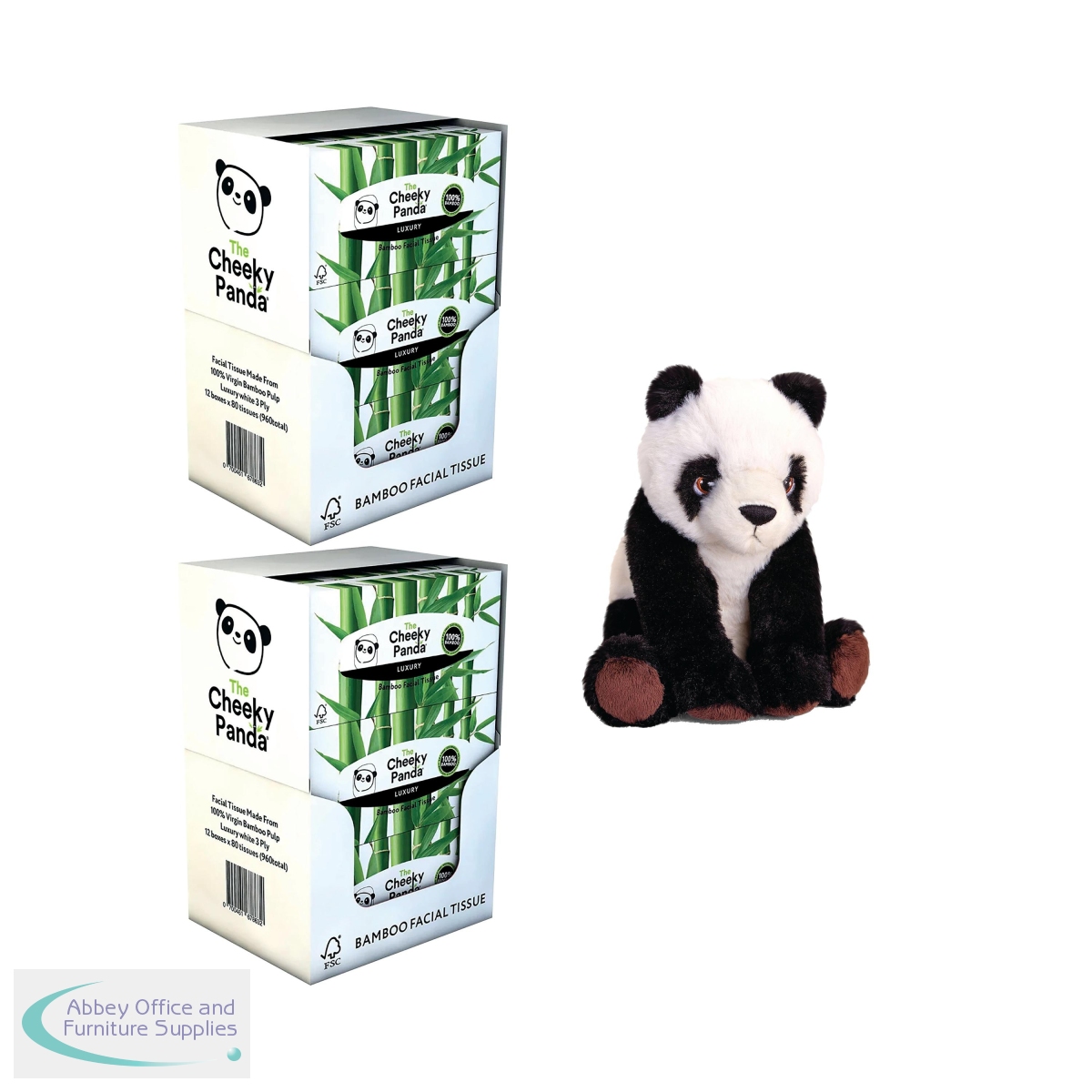 Made from FSC Certified, sustainable bamboo, these luxuriously soft tissues are kind to the skin. The Bamboo is sustainably sourced and the box is made from plastic free cardboard. Each box contains 80 3-ply tissues, measuring 195 x 185mm. Supplied in a pack of 12 boxes. This promotion includes 2 packs of 12 plus a FREE Panda soft toy.