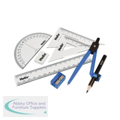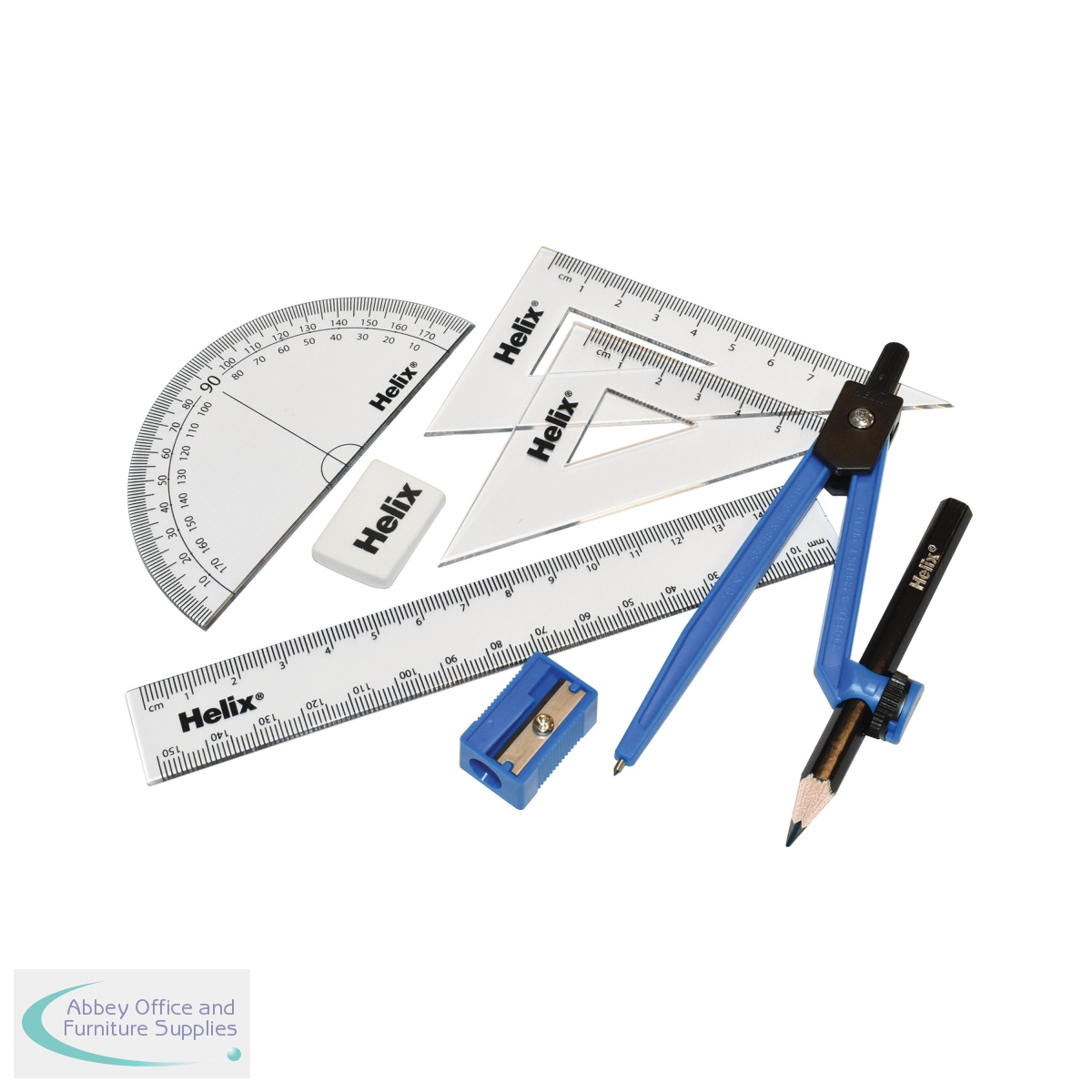 Complete with storage case, this Helix maths set contains everything needed for the maths class. The plastic storage case helps to keep contents protected and all in one place, ready for use. Supplied in a pack of 12.