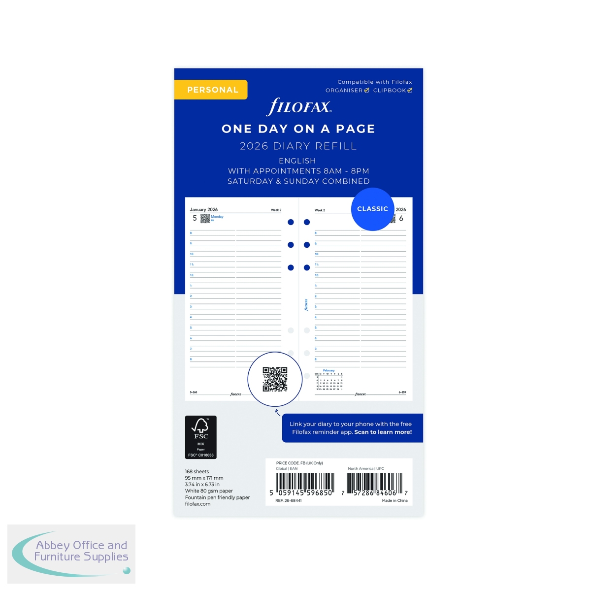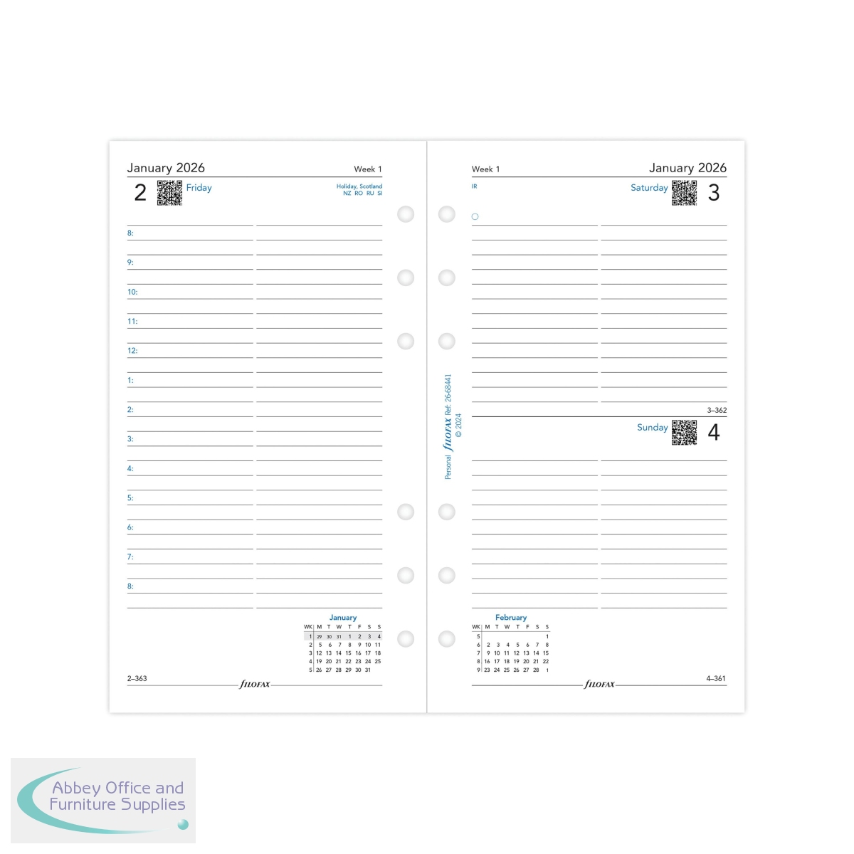 FX59685 - Filofax Refill Personal Day Per Page Appointment 2026 26-68441