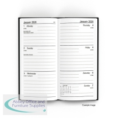 This week to view diary is ideal for meetings, appointments, deadlines and other plans, with a reference calendar on each week for help planning ahead. The diary also includes current and forward year planners for quick and easy reference. The slim black diary measures 159 x 79mm.