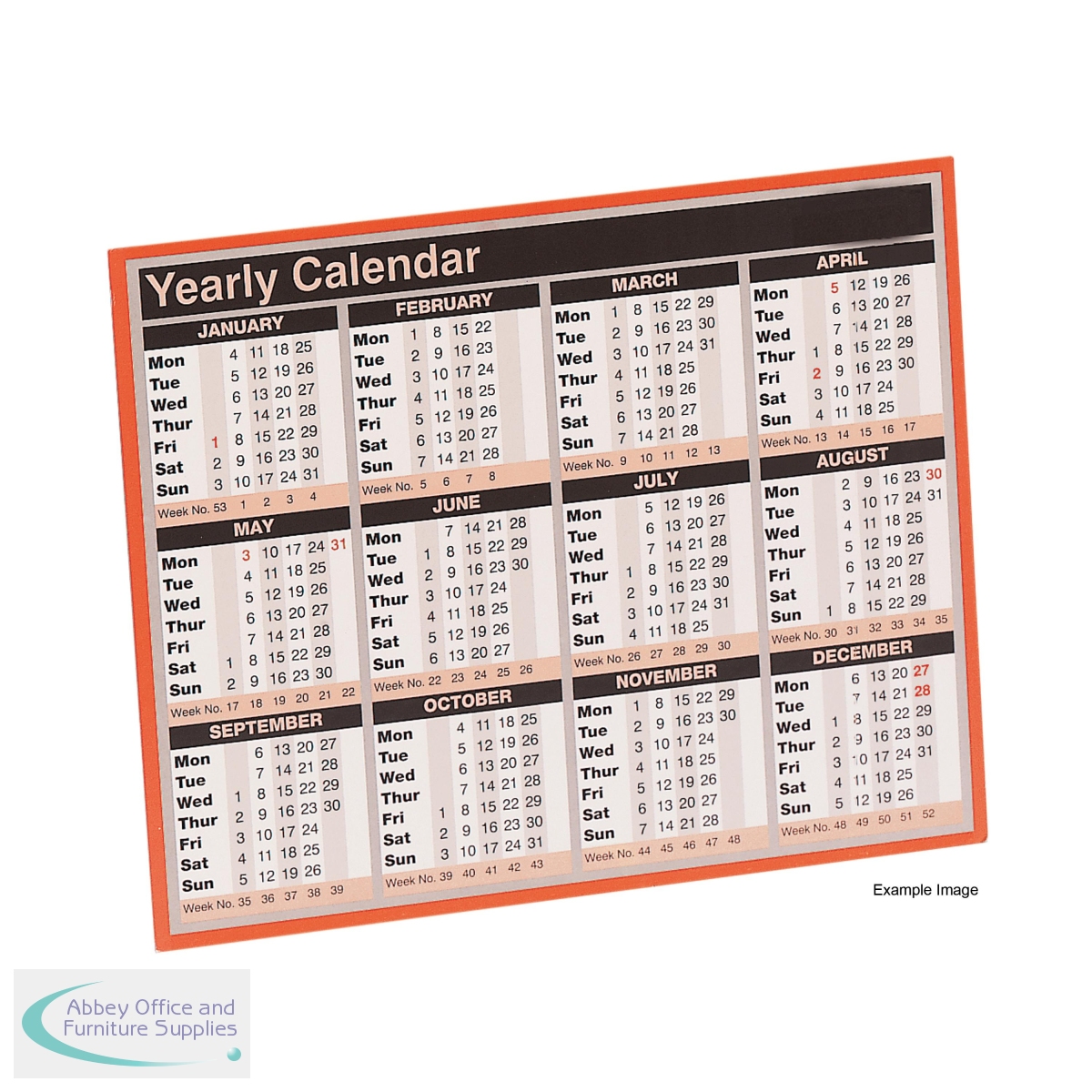 This practical year to view calendar allows you to see 12 months at a glance for quick reference. The handy design can be either wall mounted, or desk mounted using the fold out strut, and also features calendar week numbers, and previous and forward year calendars on the reverse for easy reference. This calendar measures 257 x 210mm.