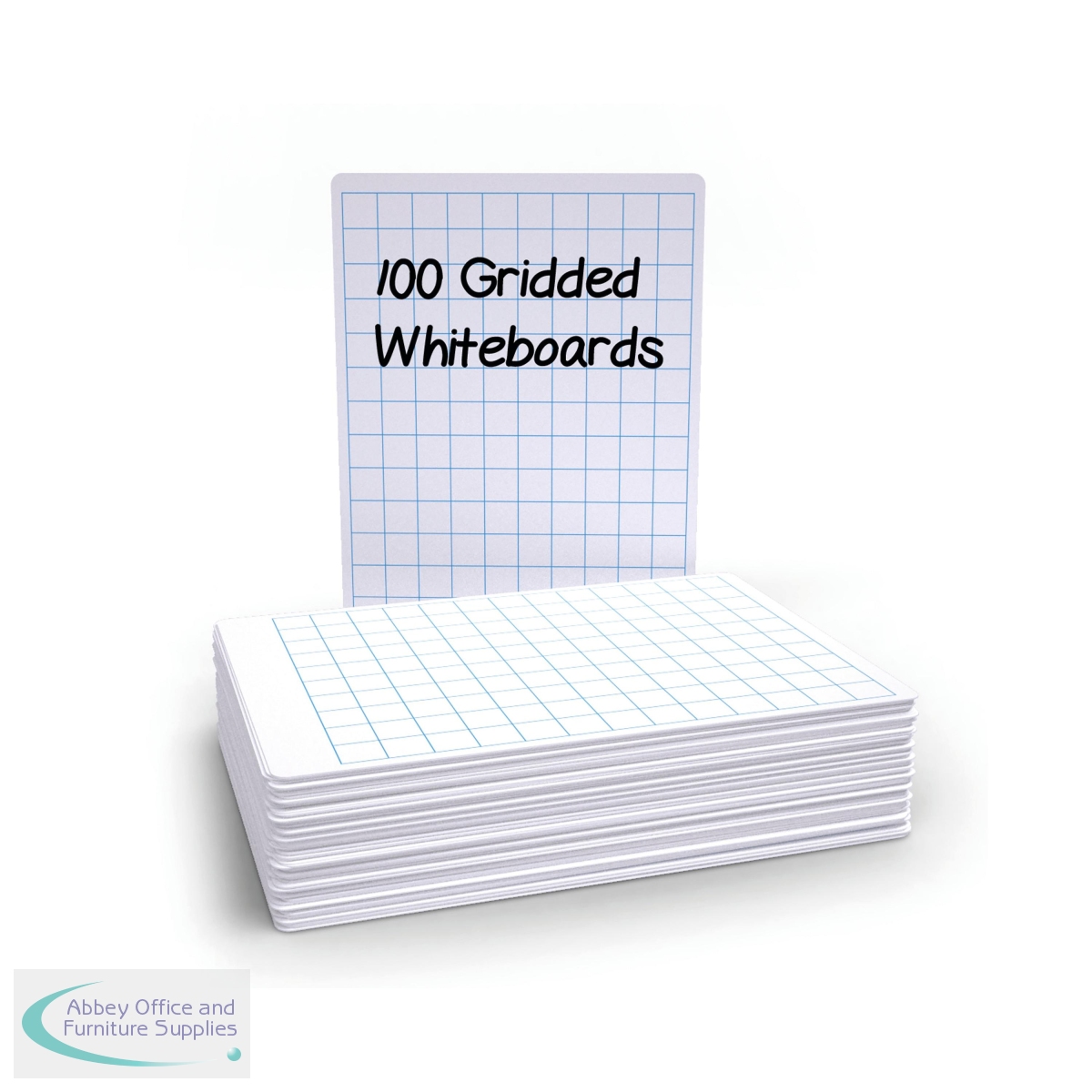 These A4 gridded whiteboards have been designed for individual pupil use. Perfect for the classroom, these budget-friendly Show-me boards are durable with a tear-resistant core. Featuring a glossy drywipe surface, the boards are gridded on one side. Supplied in a pack of 100 boards.