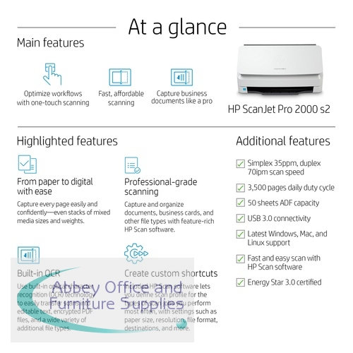 HP6FW06AB19 - HP ScanJet Pro 2000 s2 Sheet-feed Scanner 6FW06A#B19
