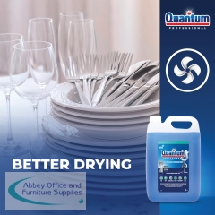 Quantum Professional Rinse Aid is designed for commercial dishwashers with a washing time of 1-5 minutes. Use Quantum Professional Rinse Aid together with Quantum Professional Detergent in order to get better drying and shinier results v Quantum detergent alone.