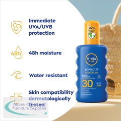 PX02284 - Nivea Sun Protect and Moisture Sun Cream Lotion Spray SPF 30 Pump Bottle 200ml 707931