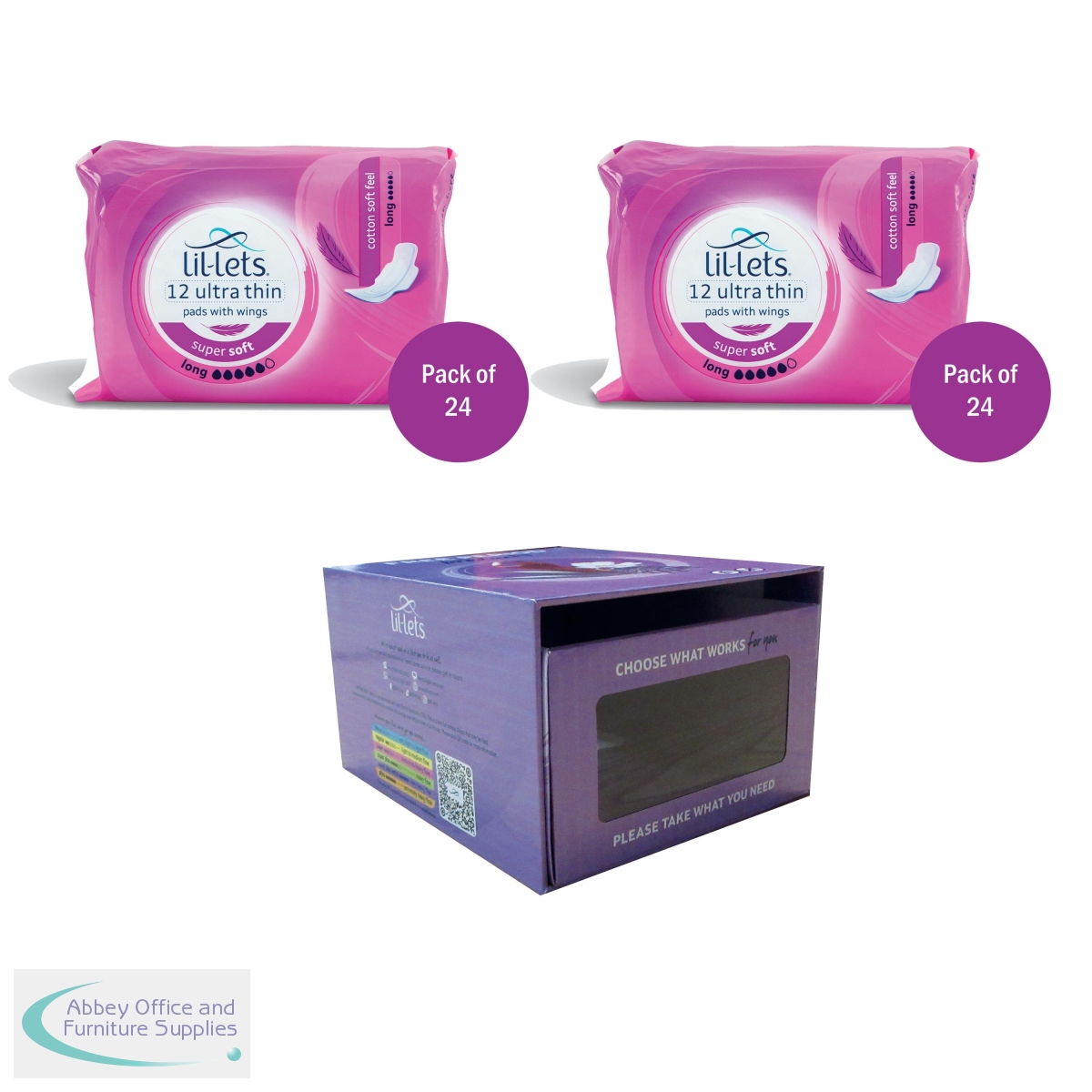 LIL800002 - Lil-Lets Supersoft Sanitary Pads Long x12 Pack of 24 Buy 2 Get FOC Dispenser