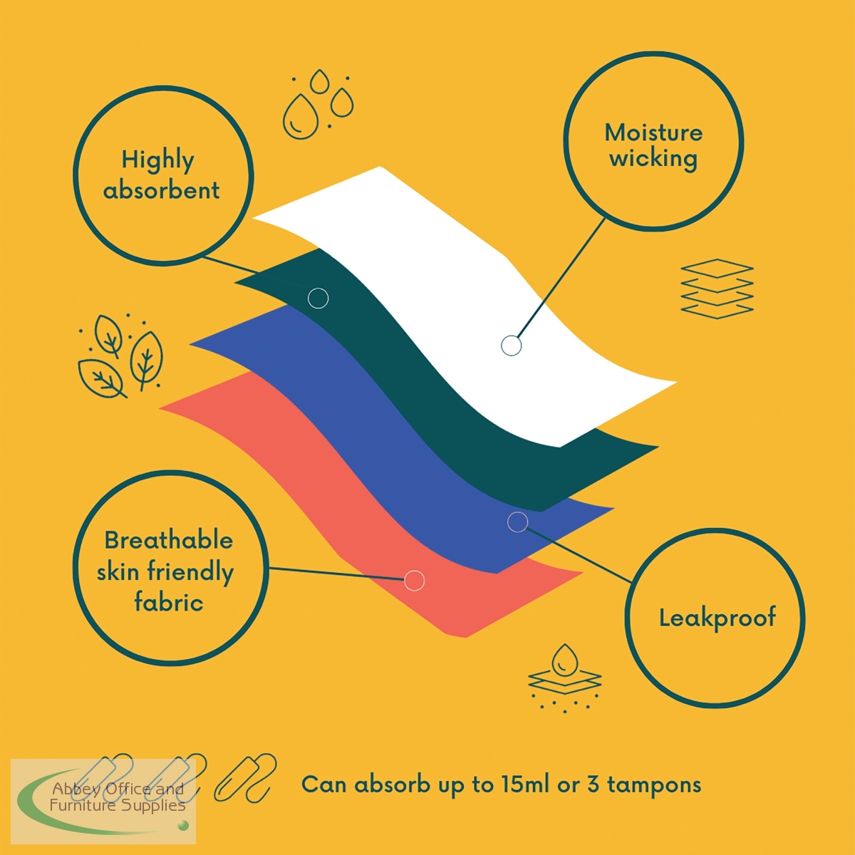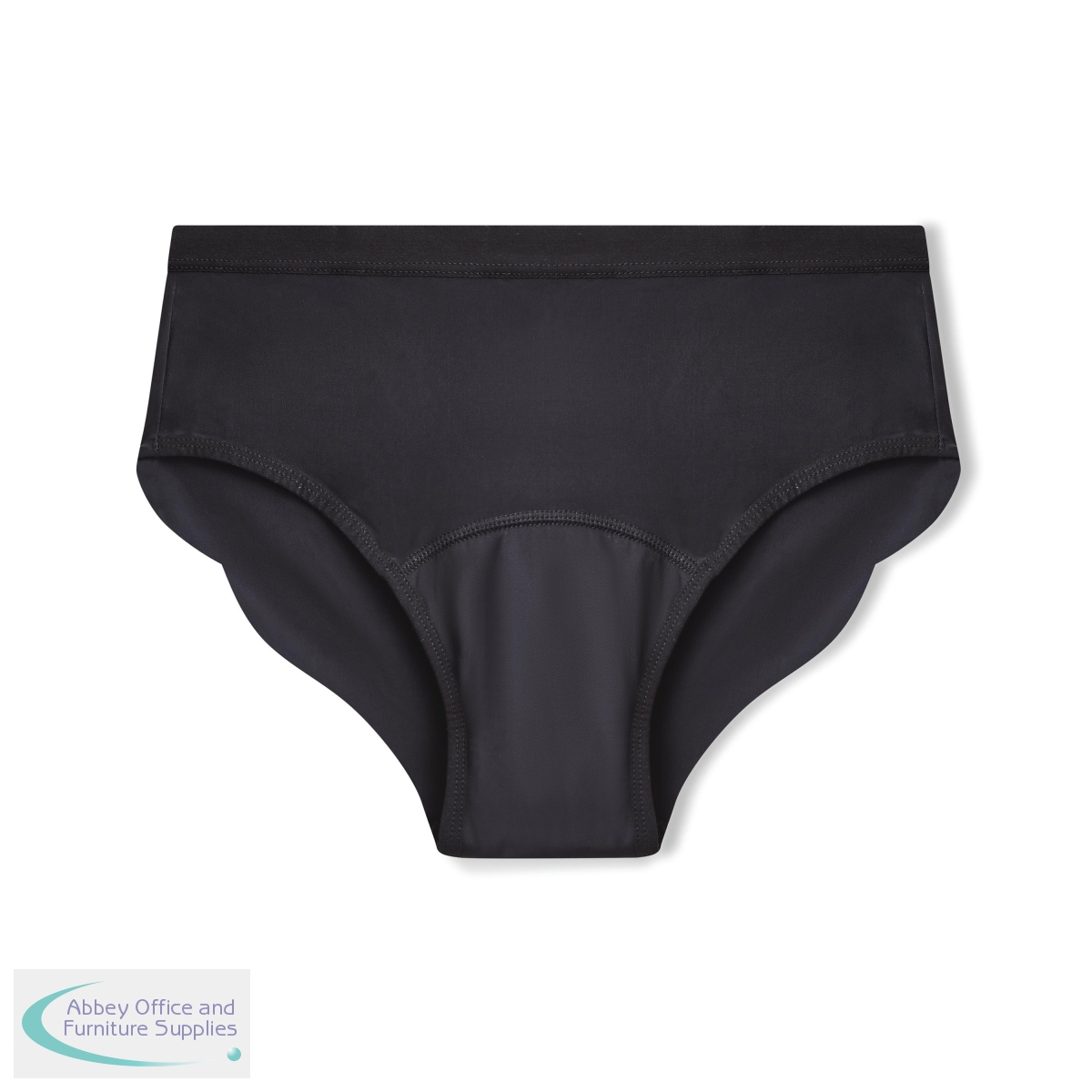 These fully washable, absorbent and very discreet pants are designed for periods and light bladder leaks. Featuring four layers of absorbent gusset fabric with a top layer of moisture wicking cotton; a second super absorbent layer; plus a third layer of breathable TPU which stops any moisture penetrating the outer layer. The outer layer is made from soft, breathable fabric. Suitable for use for up to 3 years, saving you money and helping the planet. Designed to be absorbent but discreet (no VPL). Supplied in black.