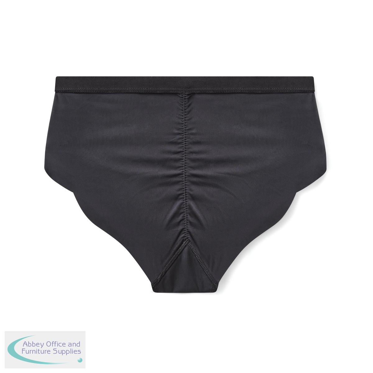 These fully washable, absorbent and very discreet pants are designed for periods and light bladder leaks. Featuring four layers of absorbent gusset fabric with a top layer of moisture wicking cotton; a second super absorbent layer; plus a third layer of breathable TPU which stops any moisture penetrating the outer layer. The outer layer is made from soft, breathable fabric. Suitable for use for up to 3 years, saving you money and helping the planet. Designed to be absorbent but discreet (no VPL). Supplied in black.