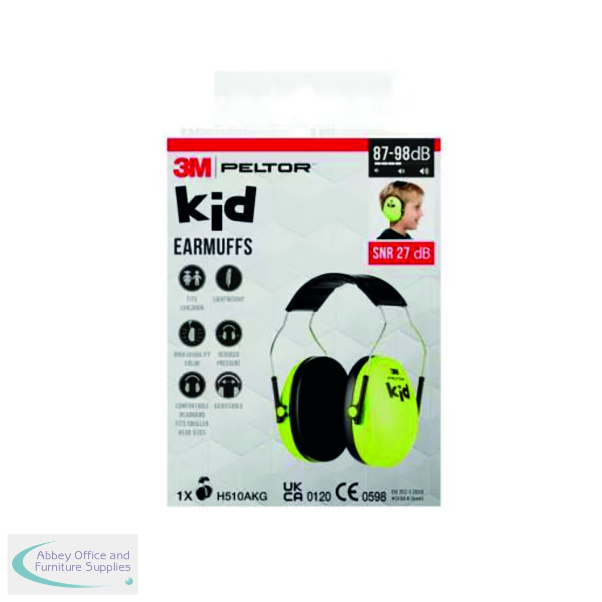 3M10289 - 3M Peltor Kid Earmuffs SNR Value 27dB Neon Green H510AKG-1