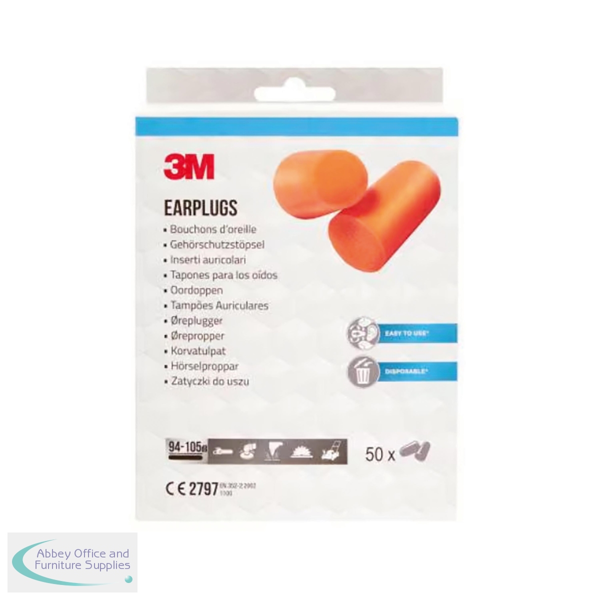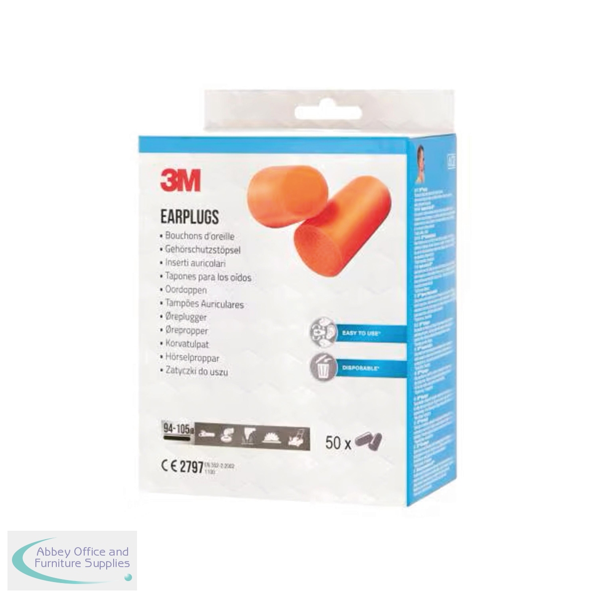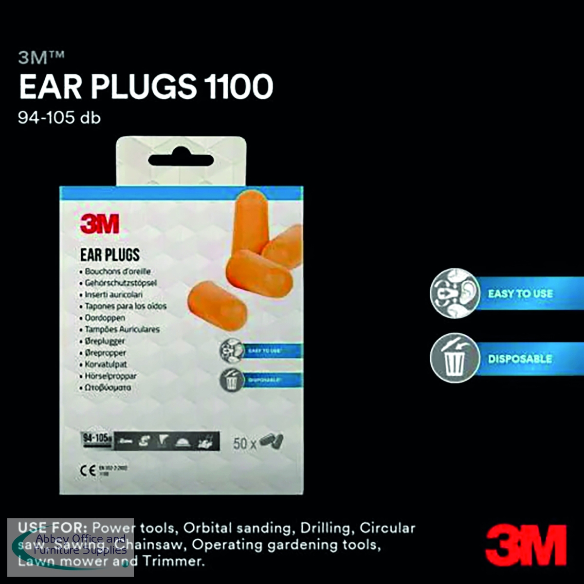 3M81335 - 3M Disposable Earplugs 1100 Soft Foam Orange (Pack of 50) 1100-50